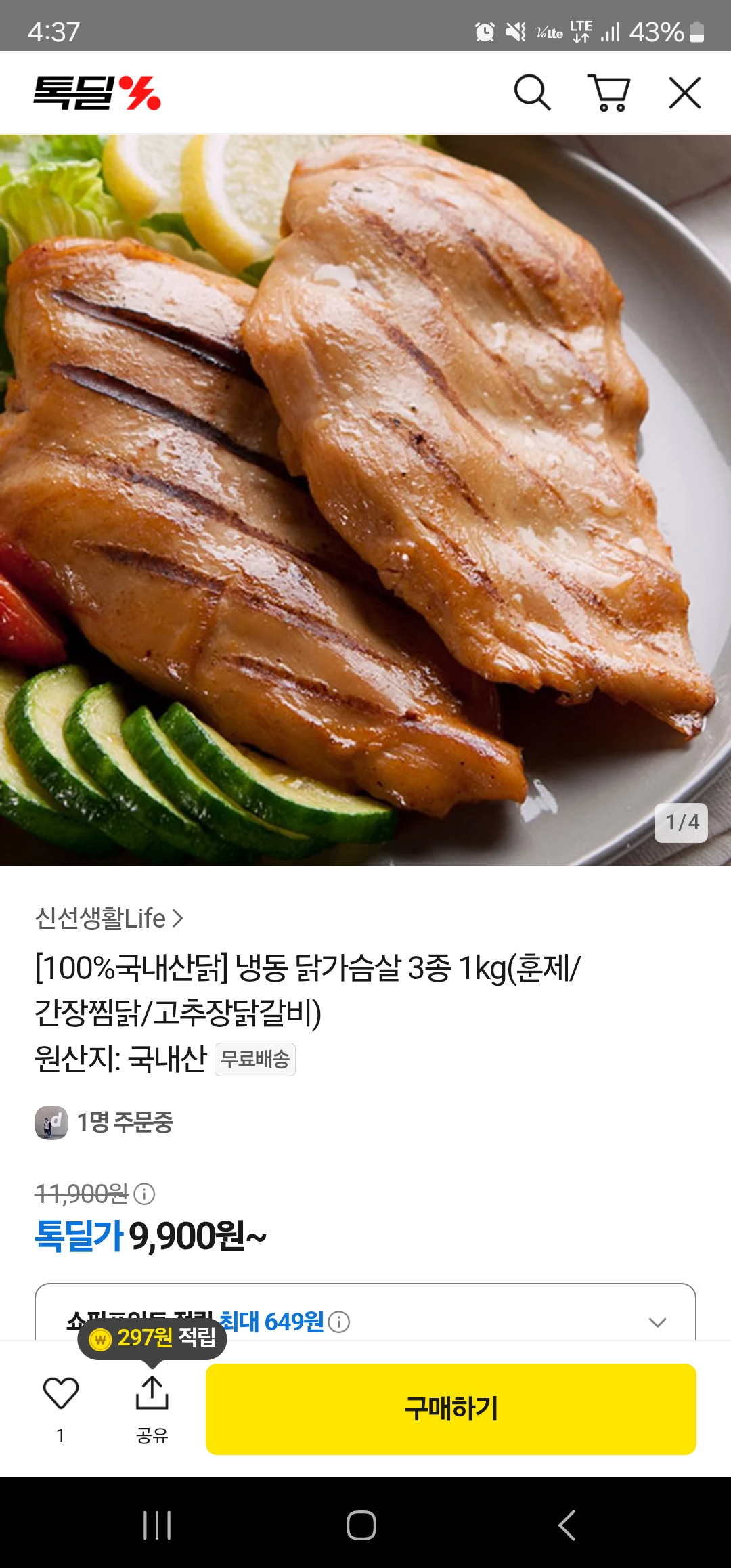 [톡딜] 국내산 닭가슴살 훈제,간장,고추장닭갈비등 1kg 11,900원 무배 > 국내핫딜