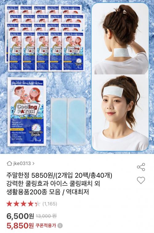 [옥션] 여름 필수템! 아이스 쿨패치 2개입 20팩(총 40개) (5,850원/무배) > 국내핫딜