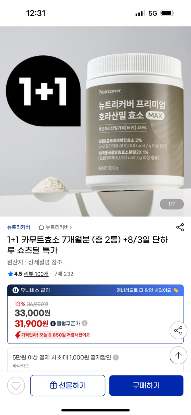 오늘하루만 행사 이구요 7개월분 33,300원에 구매되요