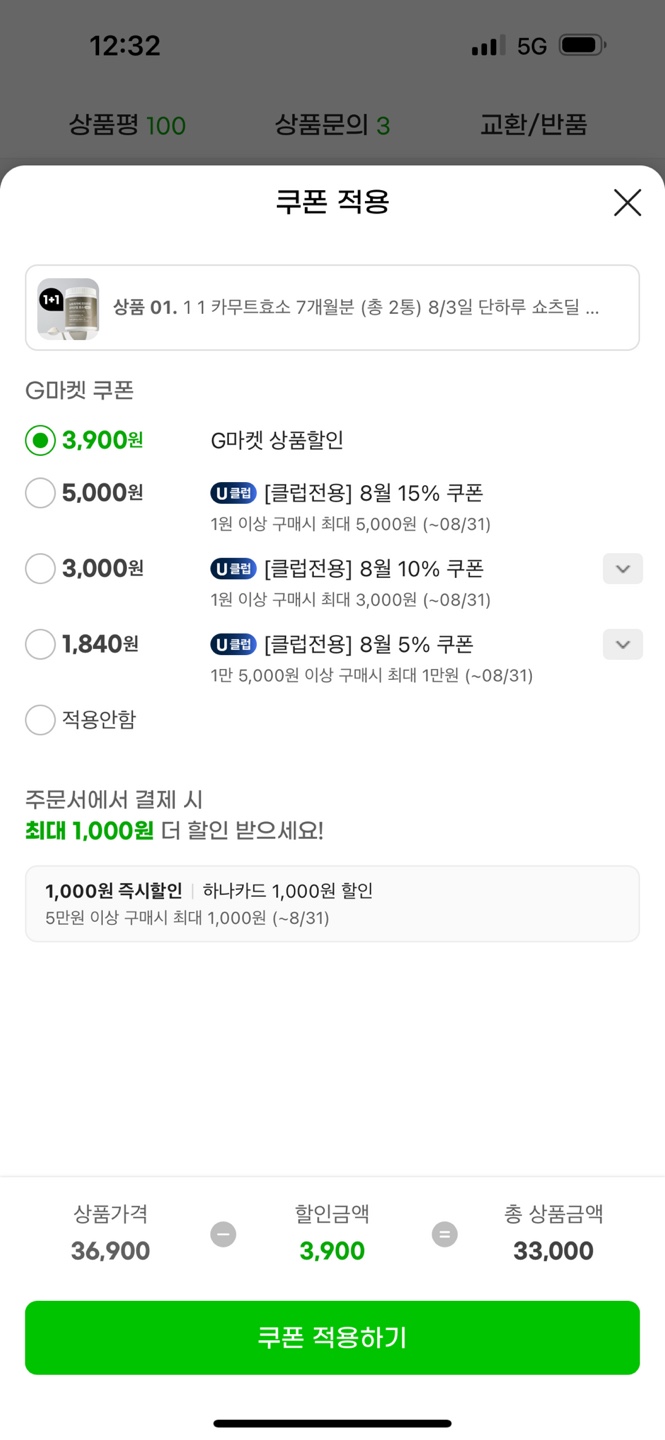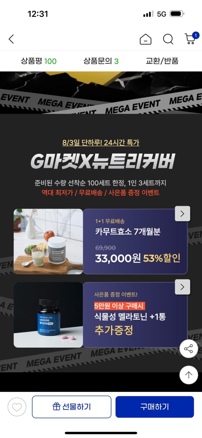 [지마켓] 8/3일 하루 특가 카무트효소 원뿔원 33,300원 (7개월분)