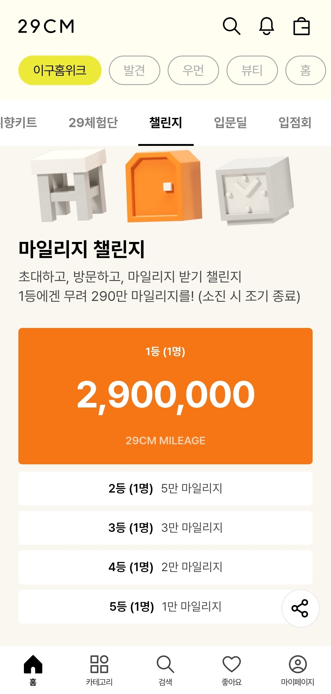 [29CM] 100 마일리지 받기 챌린지 이벤트