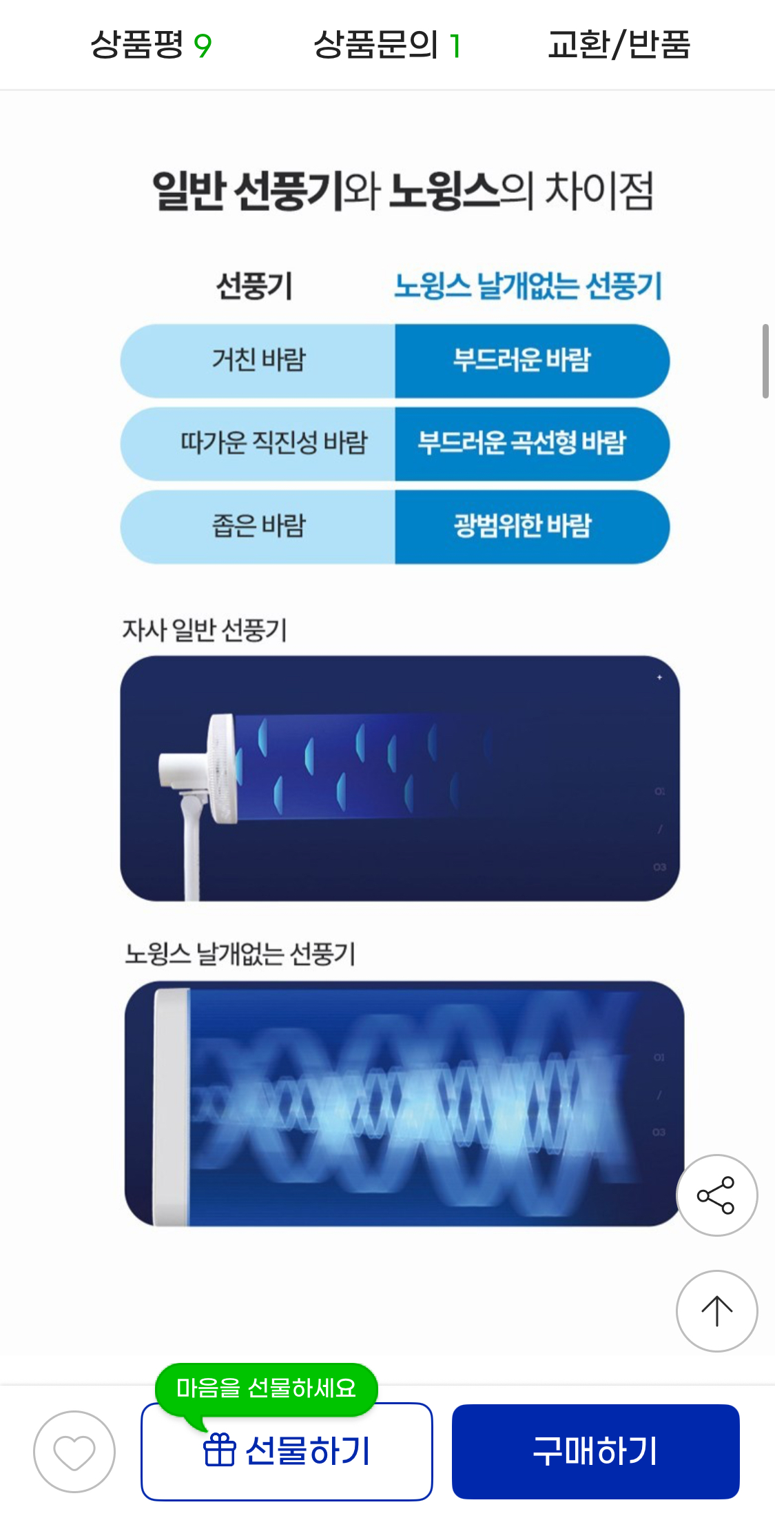 날개 없이 에어홀에서 균일한 바람이 나와서