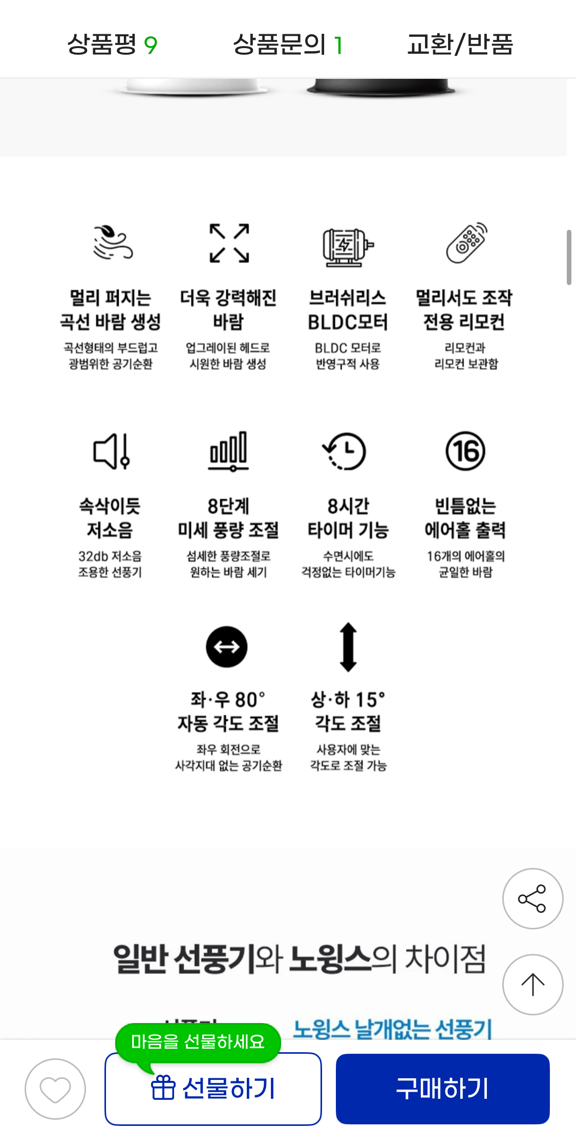 저소음이고 풍량 조절 8단계까지 되는 제품이니