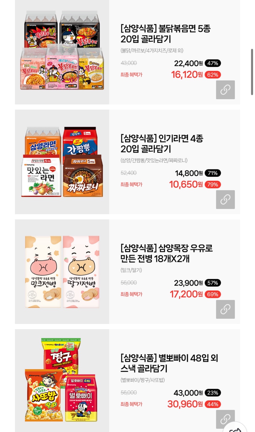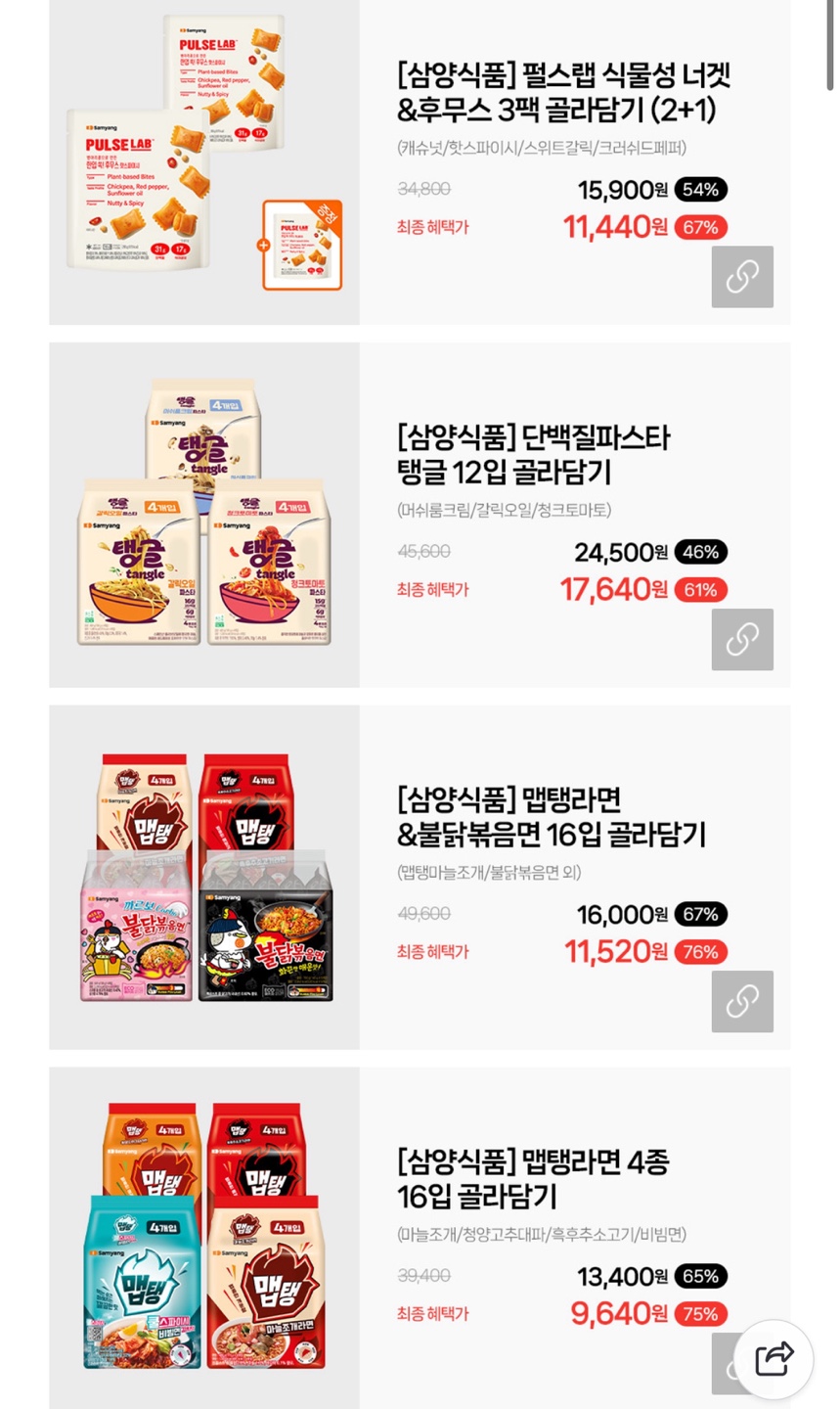 [네이버] 삼양 불닭·파스타 골라담기 행사 중이네요 (다양/무배) > 국내핫딜