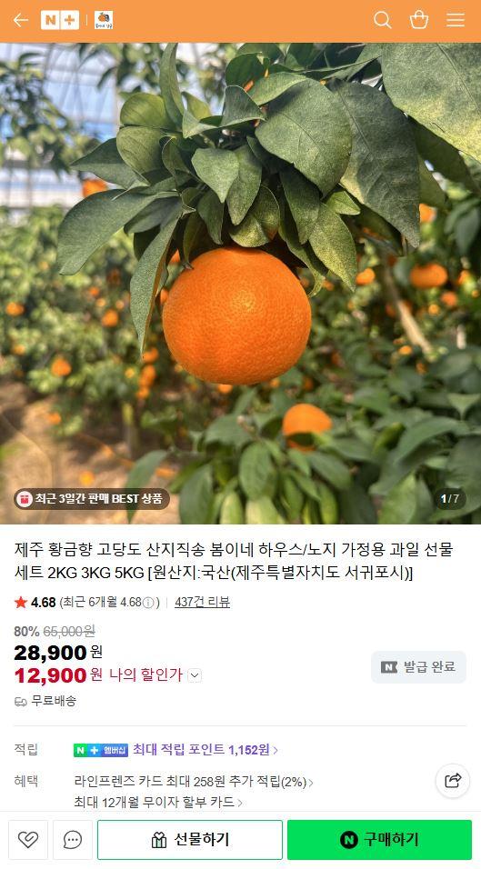 쿠폰 받아 적용해야 3kg 12,900원 나옵니다