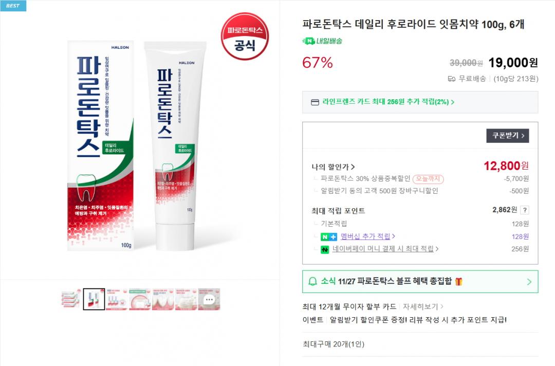 [네이버] 파로돈탁스 데일리 후로라이드 100g 6개 (32,900원/무료) > 국내핫딜