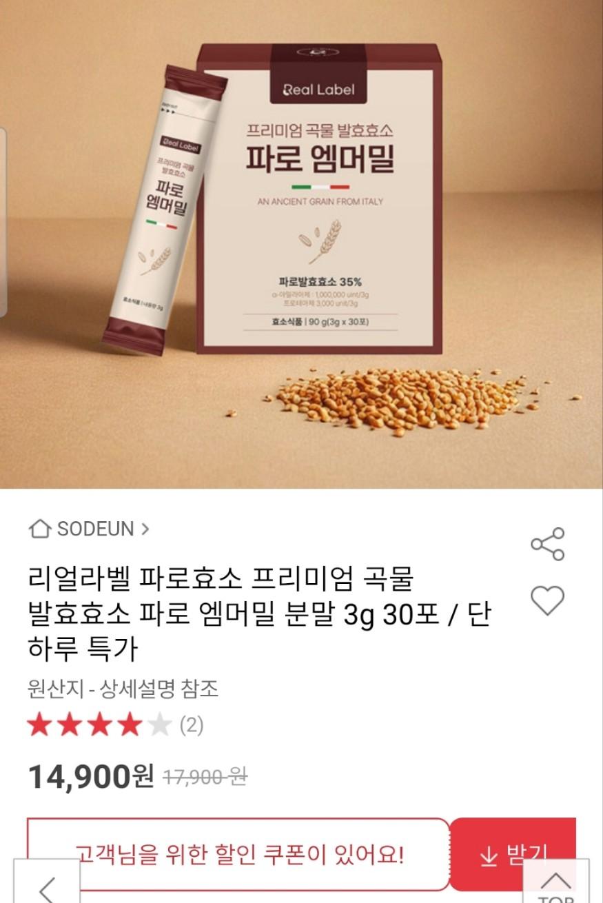 [옥션] 리얼라벨 파로효소 엠머밀 3g 30포 (14,900원/무료)