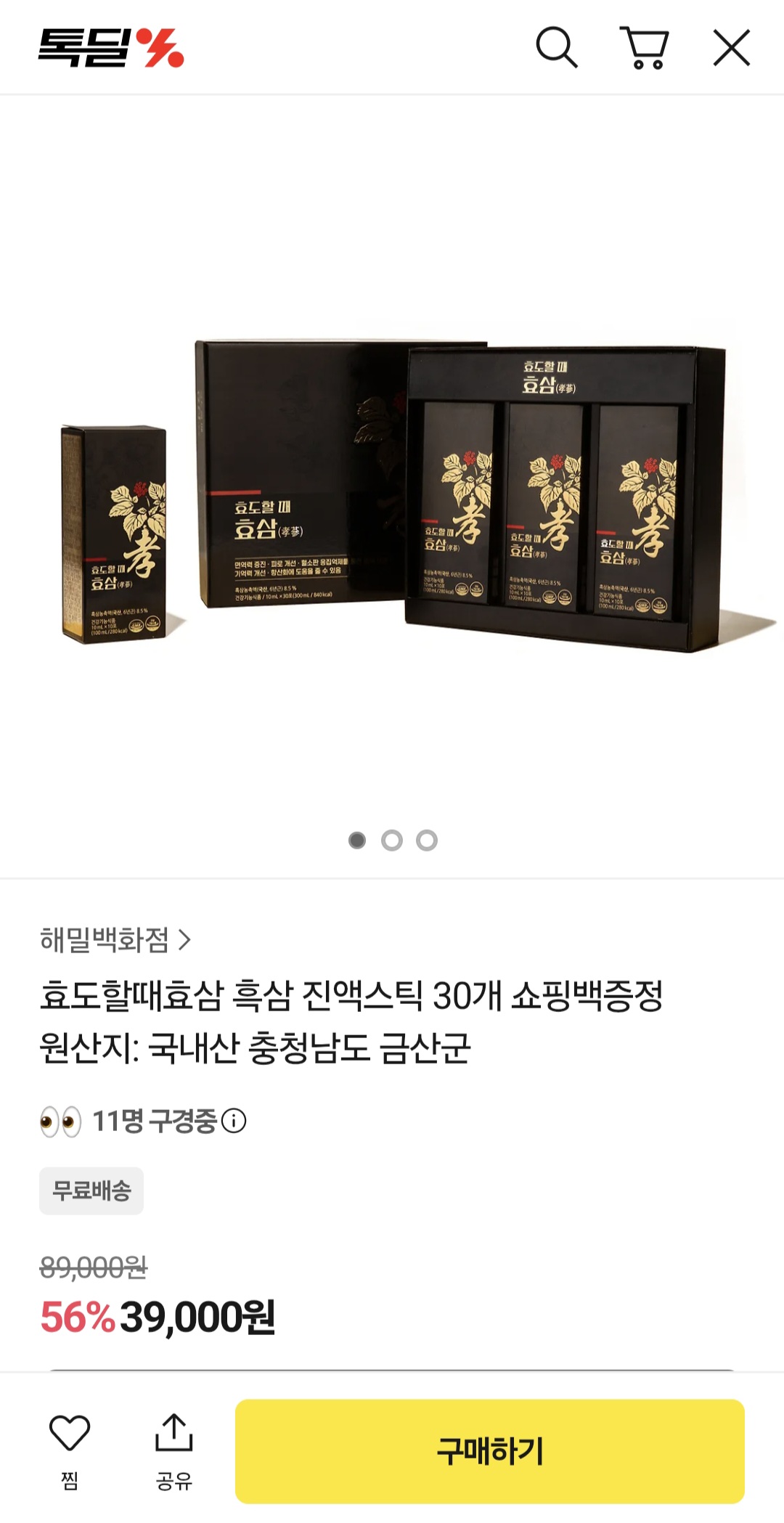 [카카오] 효도할때효삼 흑삼 진액스틱 30개 (39,000원 / 무배)
