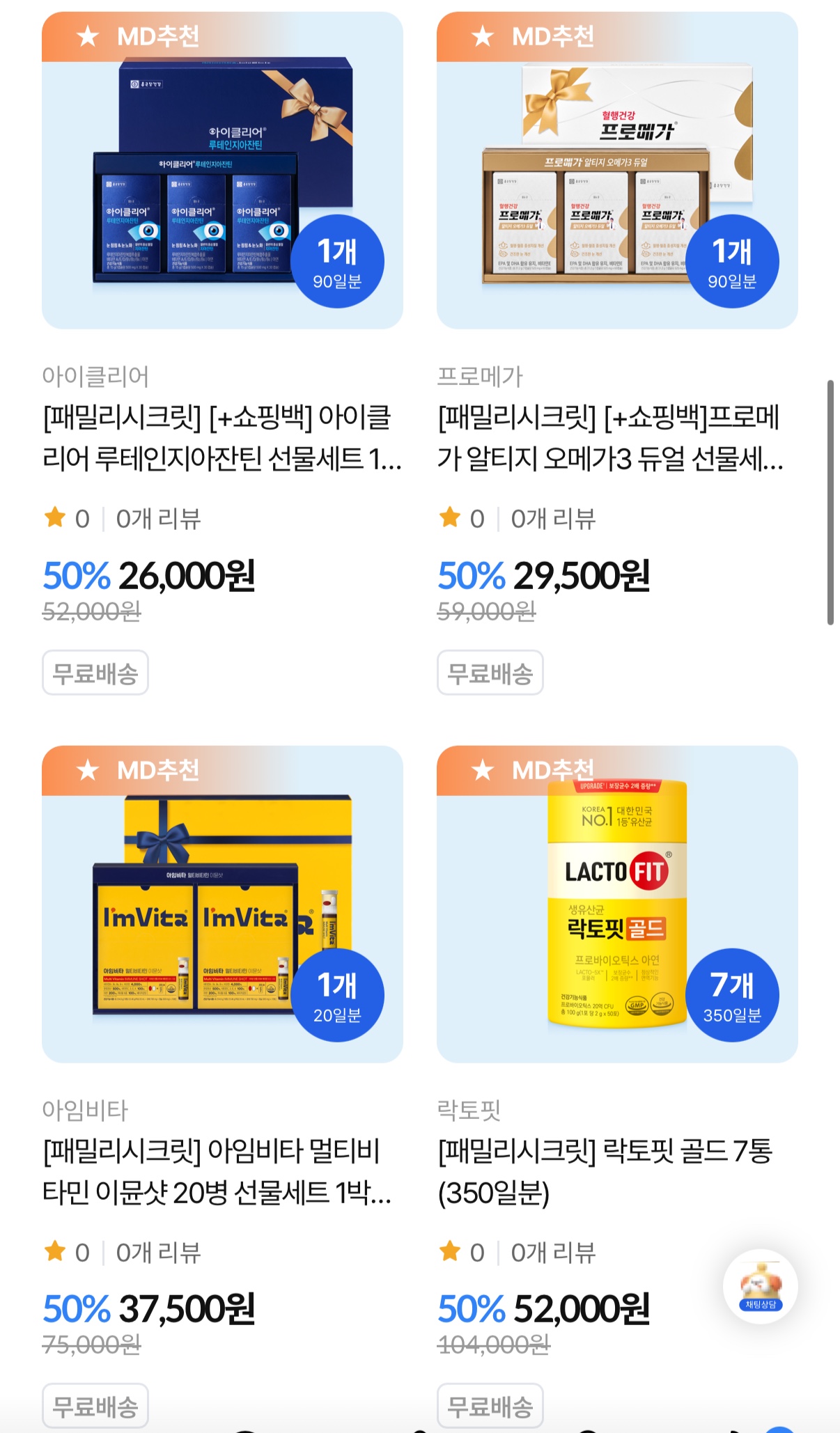 락토핏이나 알티지오메가도 할인하네요