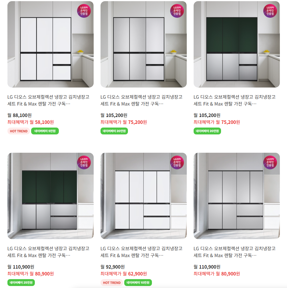 [YKG몰] LG 냉장고+김치냉장고 핏앤맥스 세트 구독 기획전 (다양/무배) > 국내핫딜