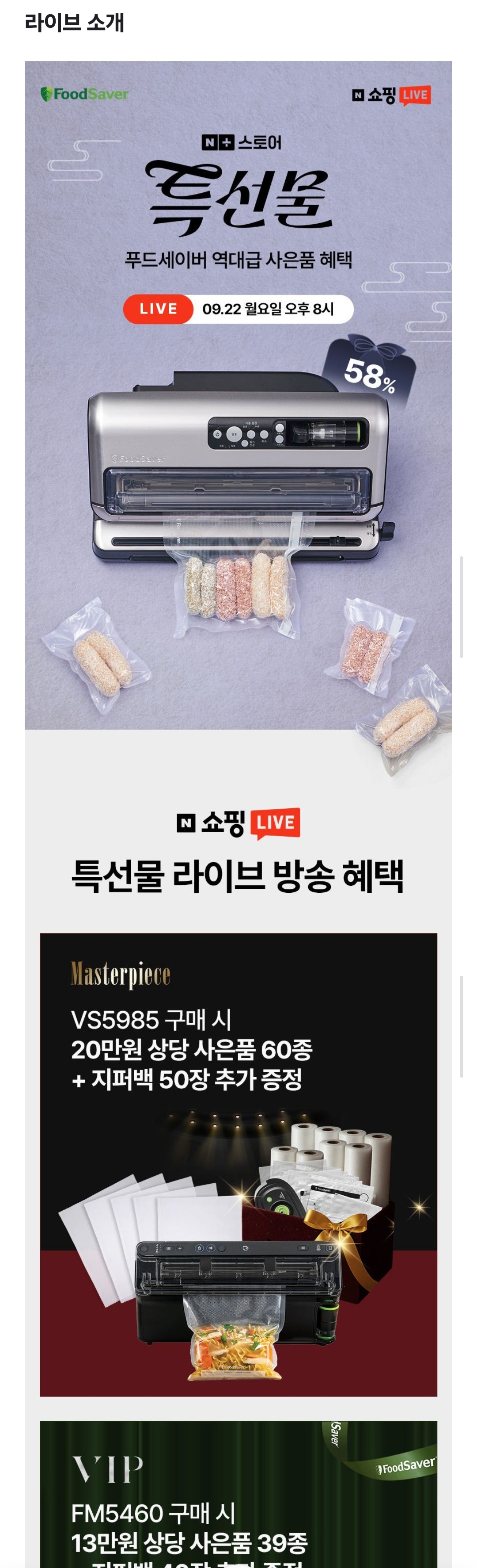 [네이버] 추석라이브 푸드세이버 진공기 세일 (119,000원/무료)