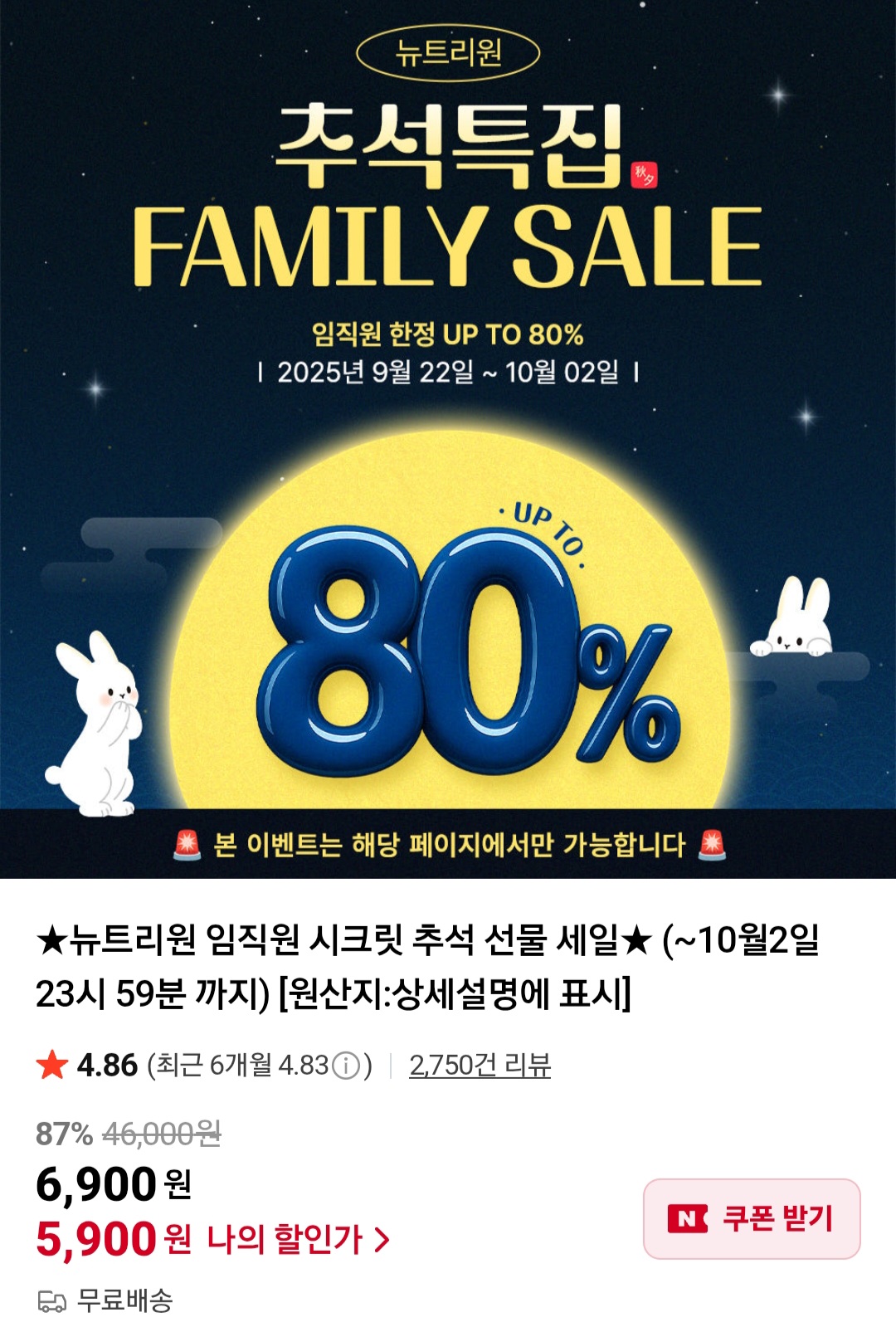 [네이버] 뉴트리원 임직원 세일 각종영양제 1개월 (6,900원/무료)