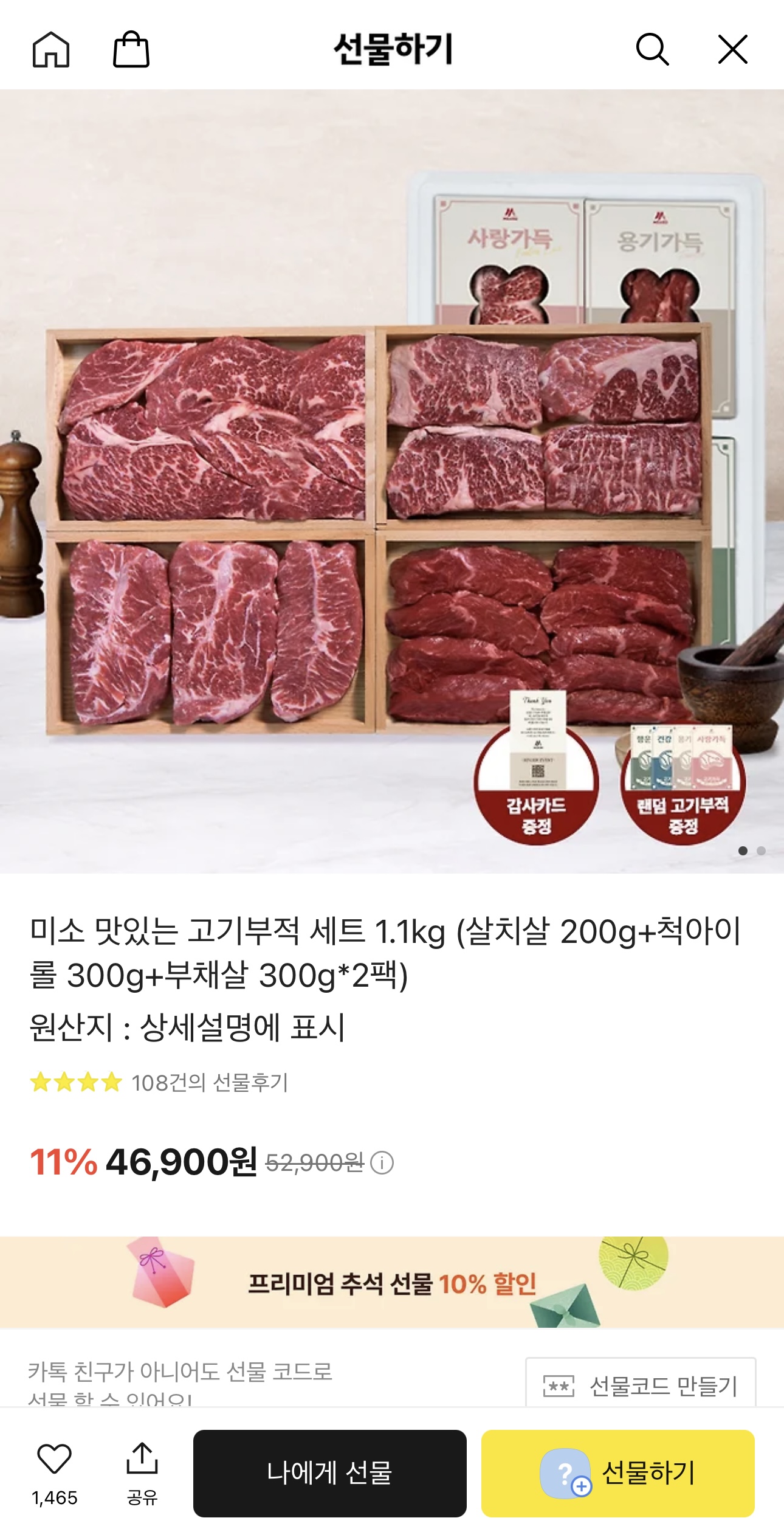 [카카오] 미소 맛있는 고기부적 세트 1.1kg (46,900원/무배)