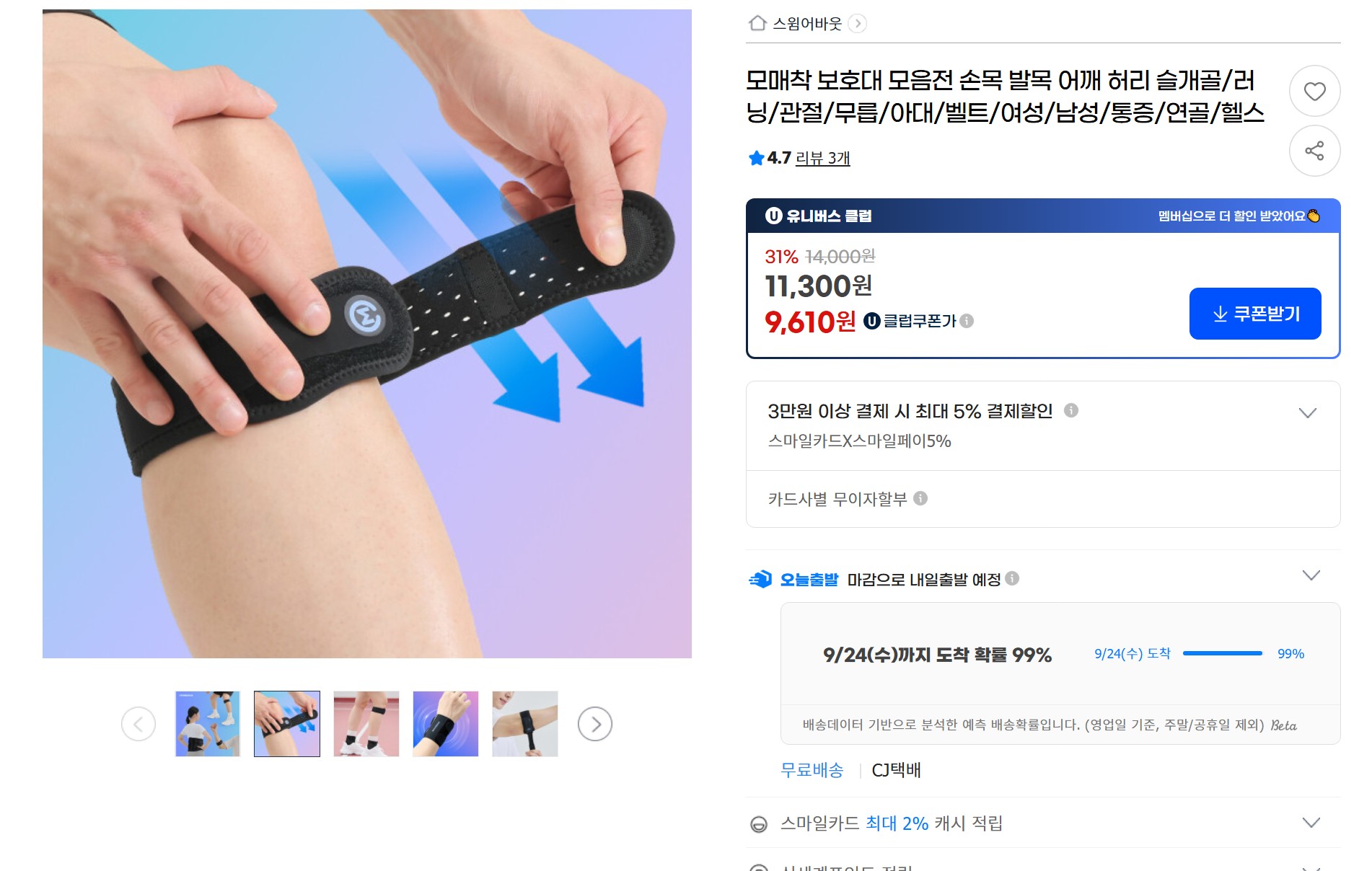 [지마켓] 모매착 보호대 모음전 손목 발목 어깨 허리 등 다양 (9,610원/무배)
