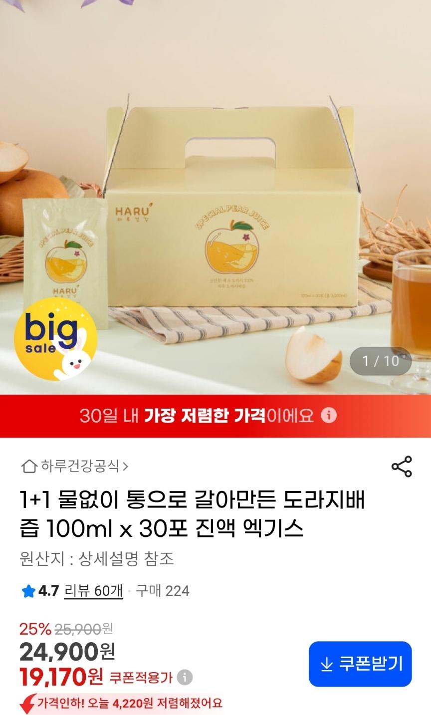 [지마켓] 1+1 물없이 통으로 갈아만든 도라지배즙 총 60포 (19,170원/무료) > 국내핫딜