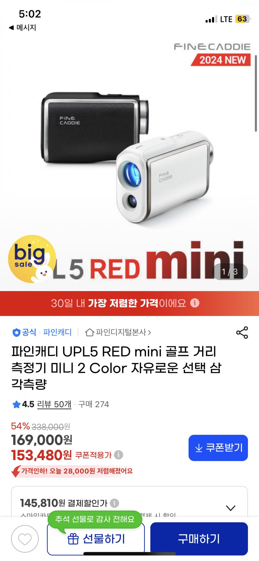 야간 라운딩때 쓸 거리측정기 계속 찾고있는데 최근에 본것중에 가격이 제일 저렴합니다
