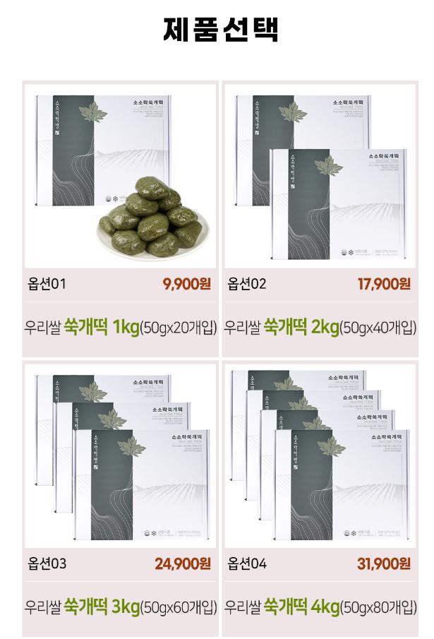 국내산 찹쌀에 국내산 해풍쑥 들어간 쑥개떡 1kg 50g x 20봉 9,900원 나오는데