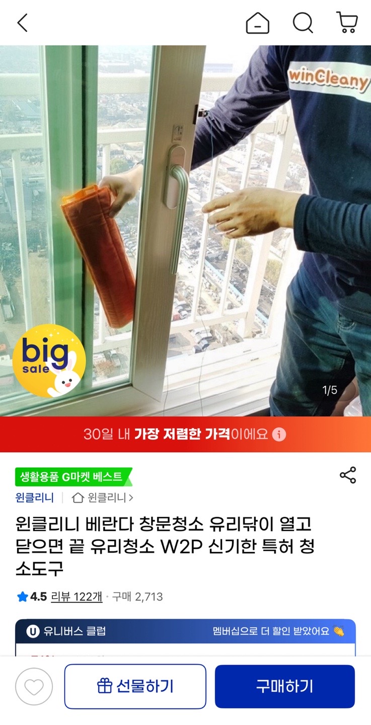 [지마켓] 윈클리니 베란다 창문청소 유리닦이 (12,510원/무배)