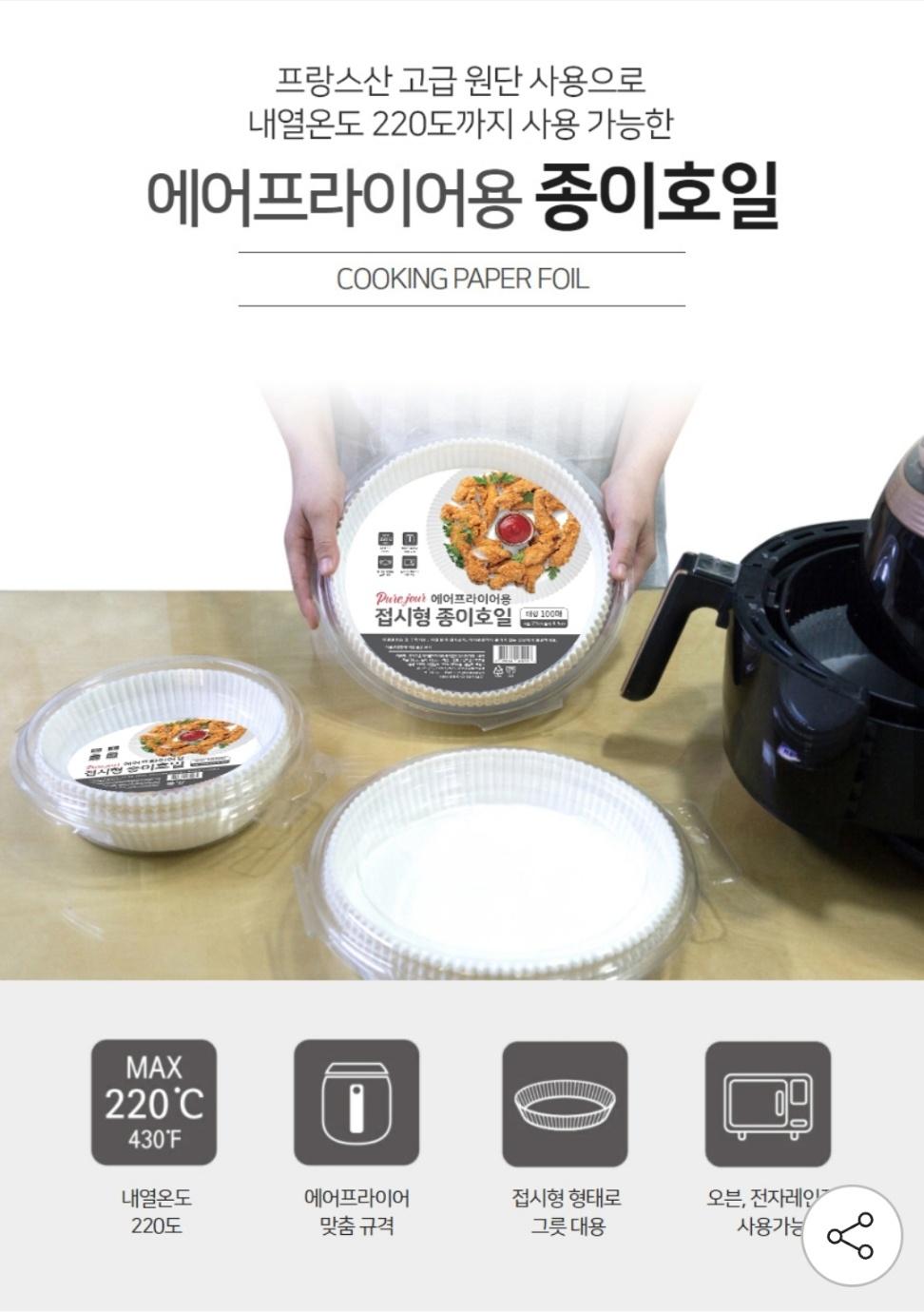 [지마켓] 퓨어주르 에어프라이어용 접시형 종이호일 100매 소형 (8,500원/무료)