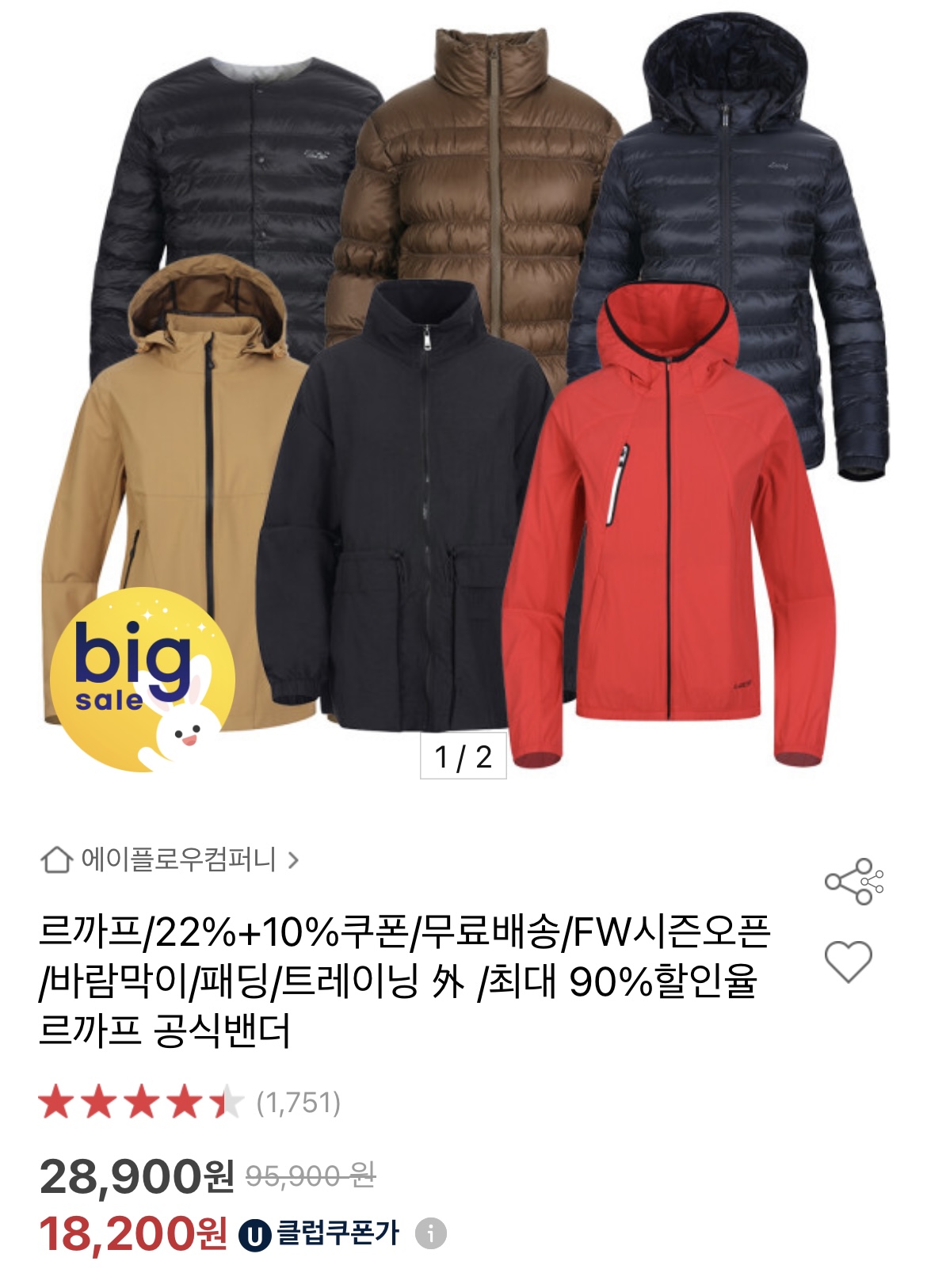[옥션] 르까프 바람막이/트레이닝복 외 다양 (9,450원부터~/무배)