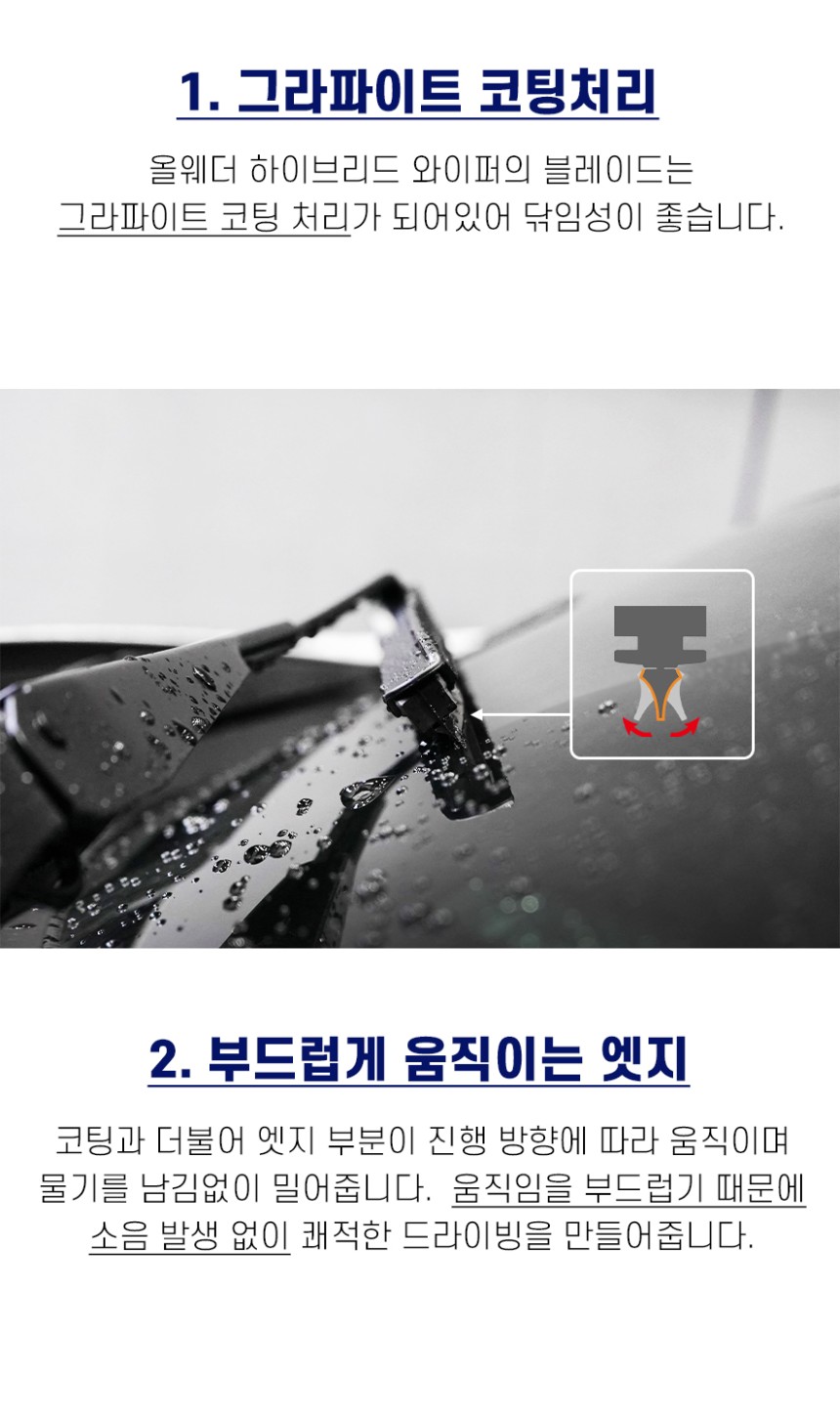그라파이트 코팅 처리된 와이퍼여서 부드럽게 잘 닦입니다.