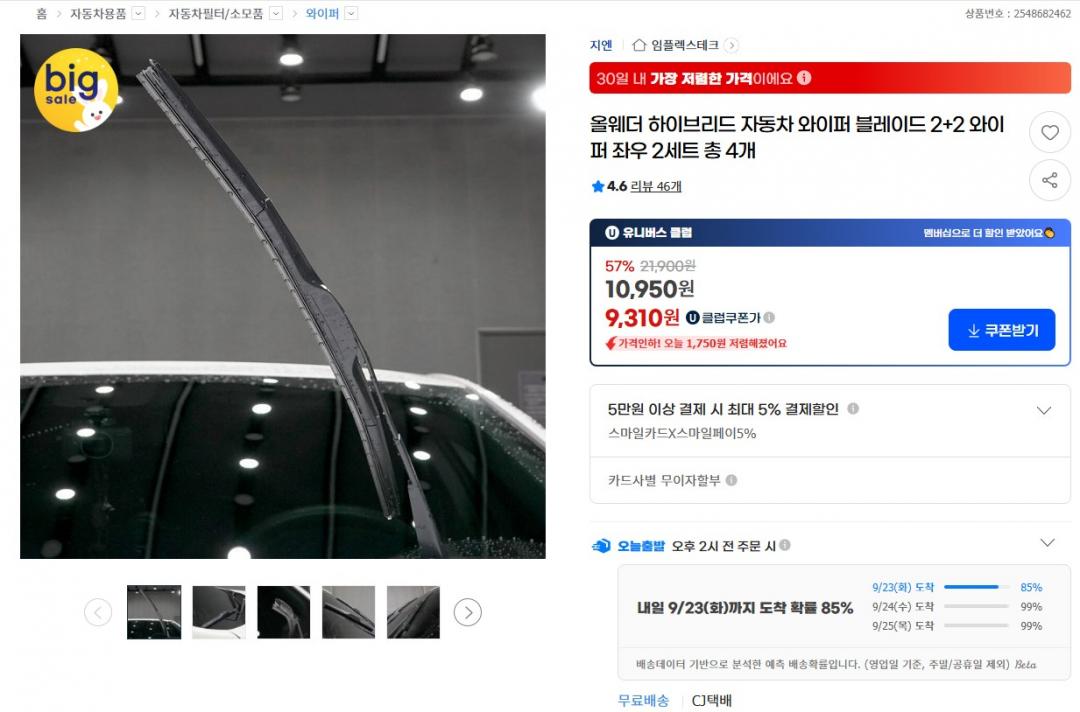 [지마켓] 올웨더 하이브리드 자동차 와이퍼 블레이드 2+2 와이퍼 좌우 2세트 총 4개 (9,310원/무배) > 국내핫딜