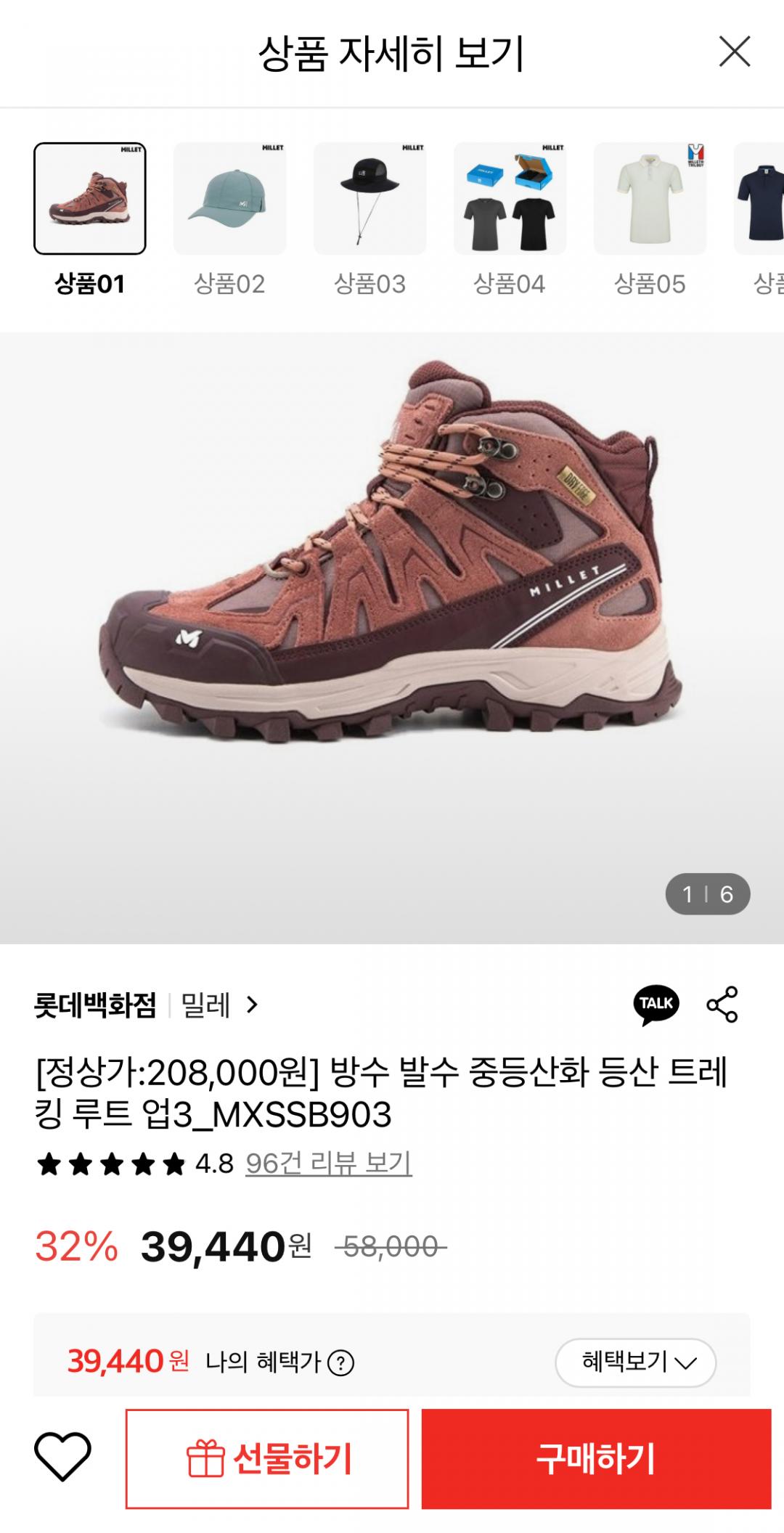 [롯데온] 밀레 방수 등산화 트레킹 루트업3 (39,440원/무료)