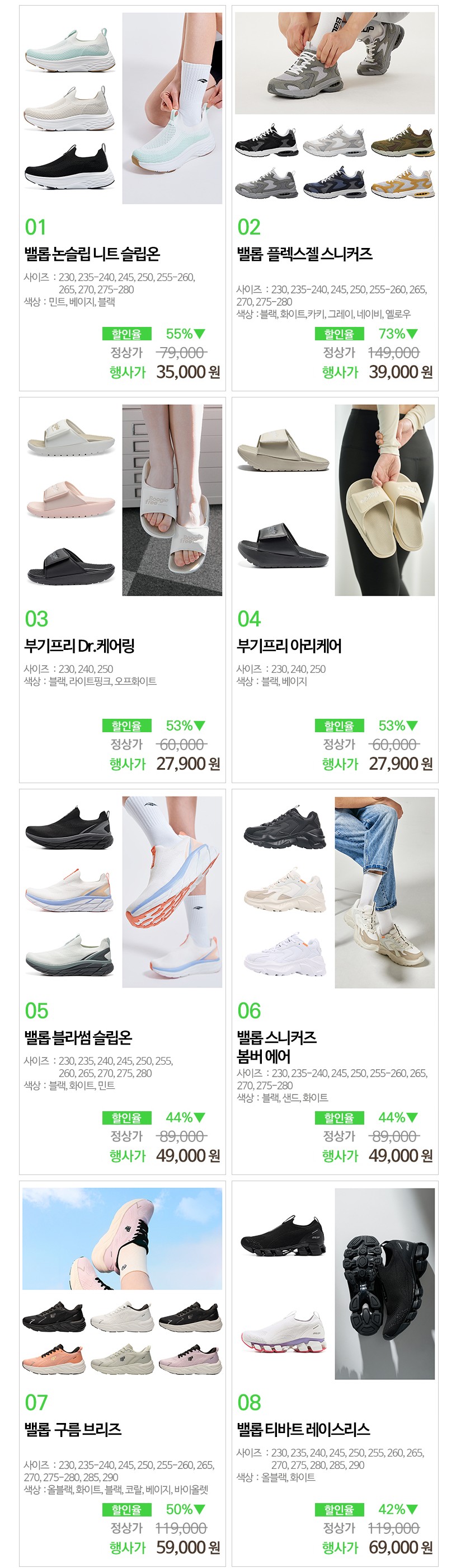 다른 신발들도 할인 많이 하는 중이라 두세켤레 구매하기에도 부담없다고 생각합니다.