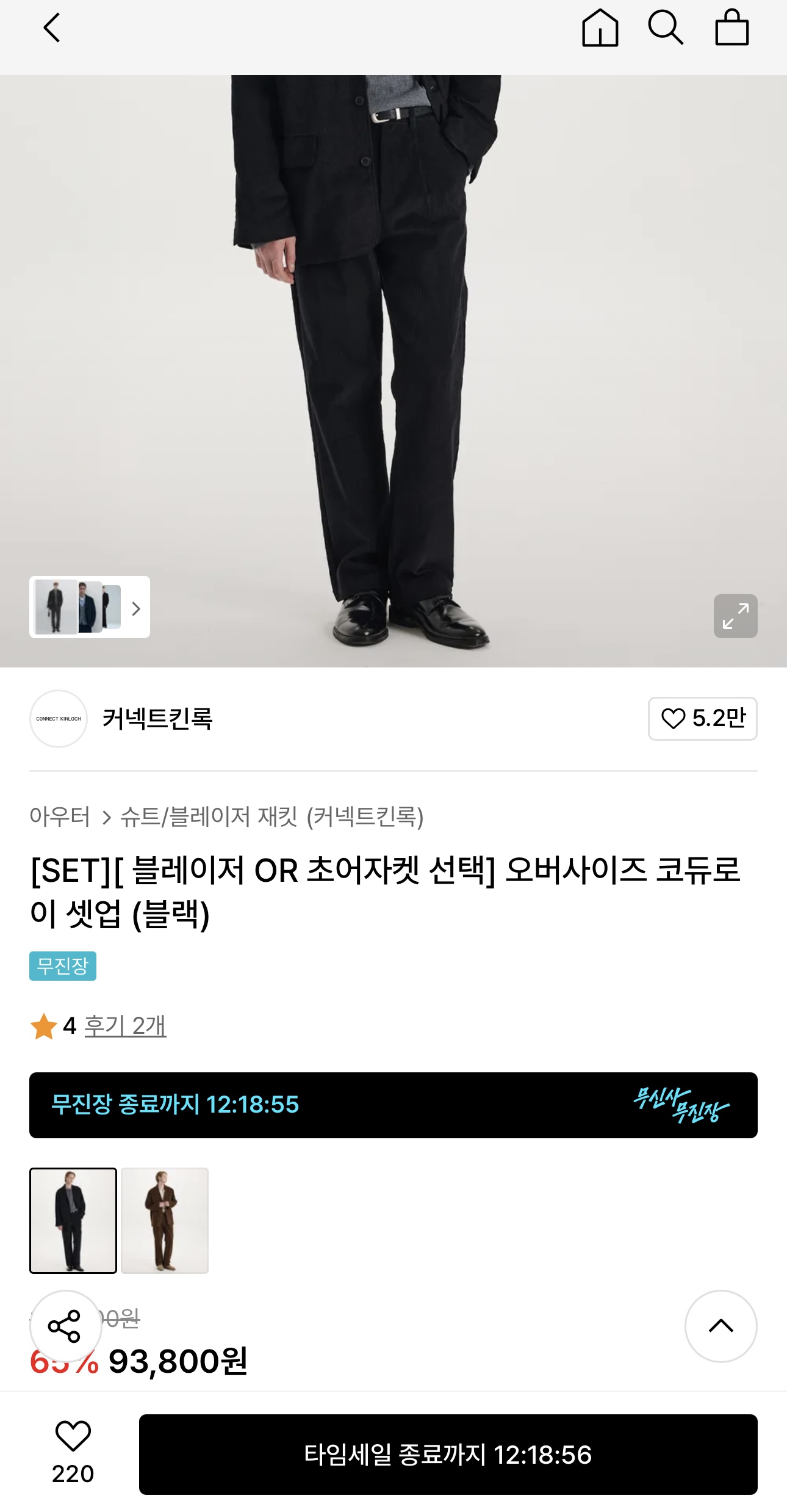 [무신사] 커넥트킨록 오버사이즈 코듀로이 셋업 (93,800원/무료)