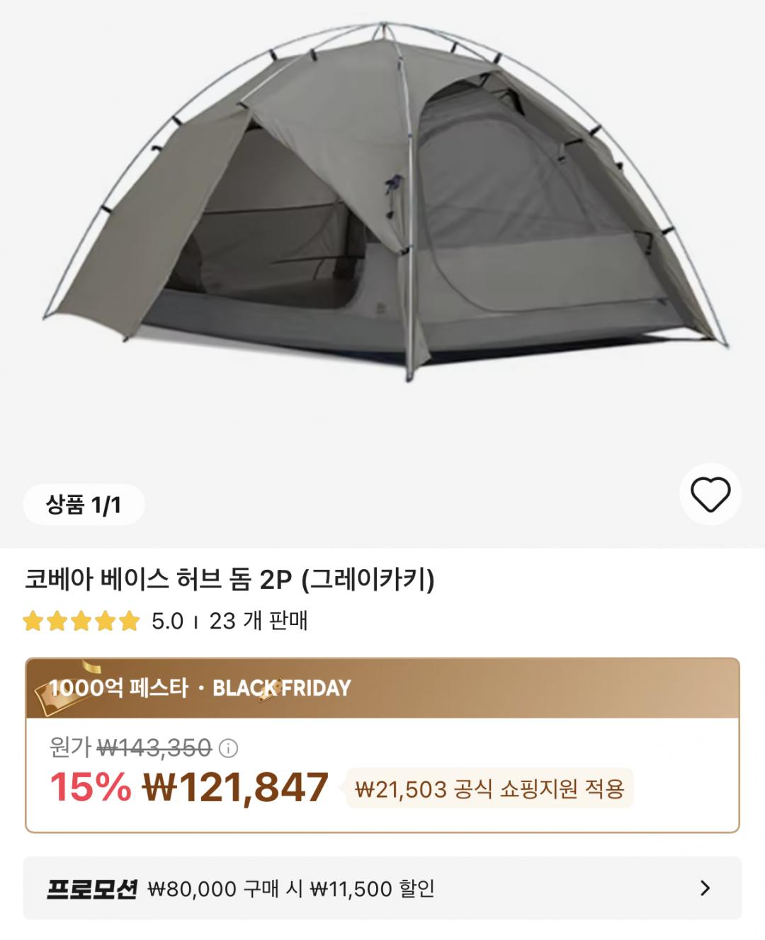 [알리] 코베아 베이스 허브 돔 2P (109,816원/무료)
