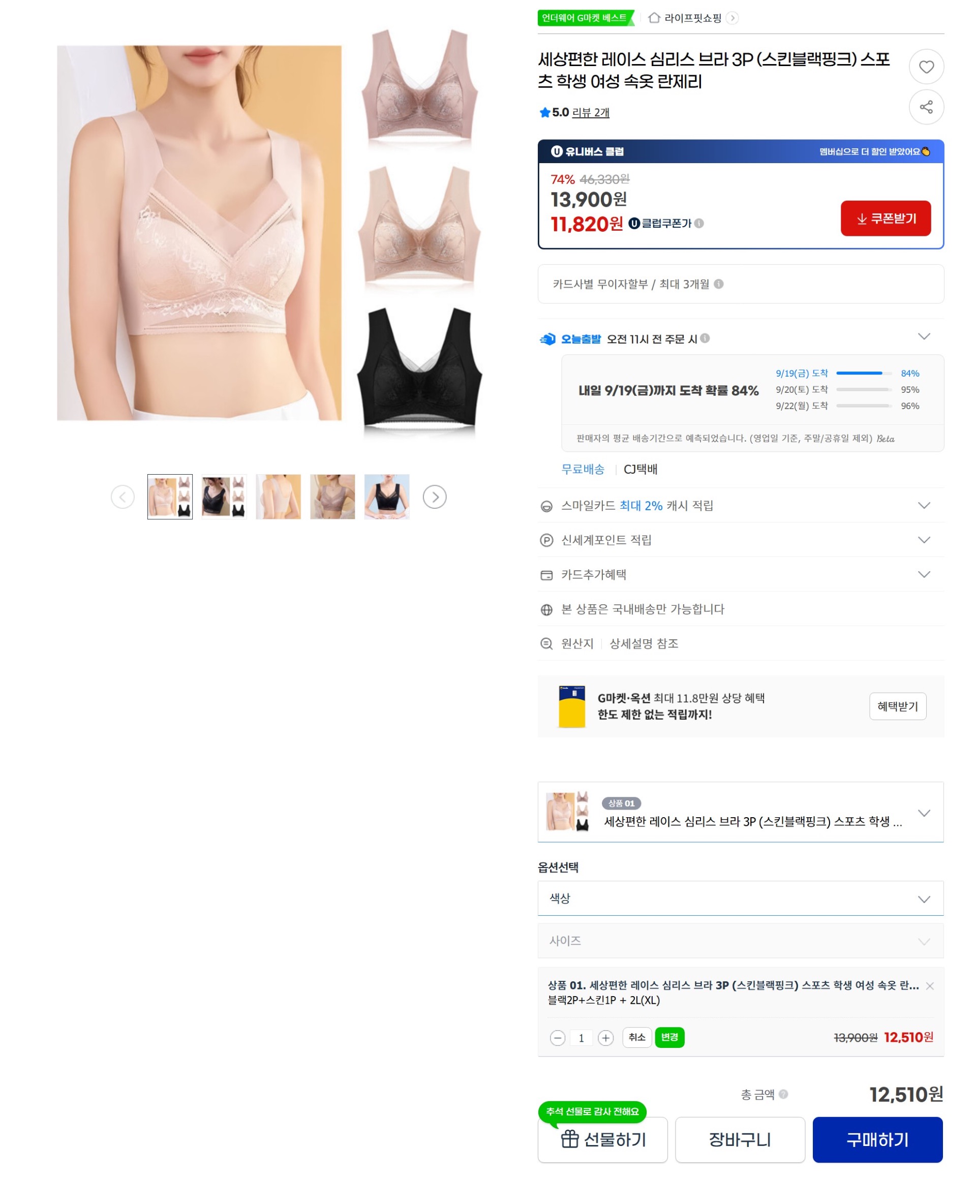 [지마켓] 세상편한 레이스 심리스 브라 3P (12510원/무배)