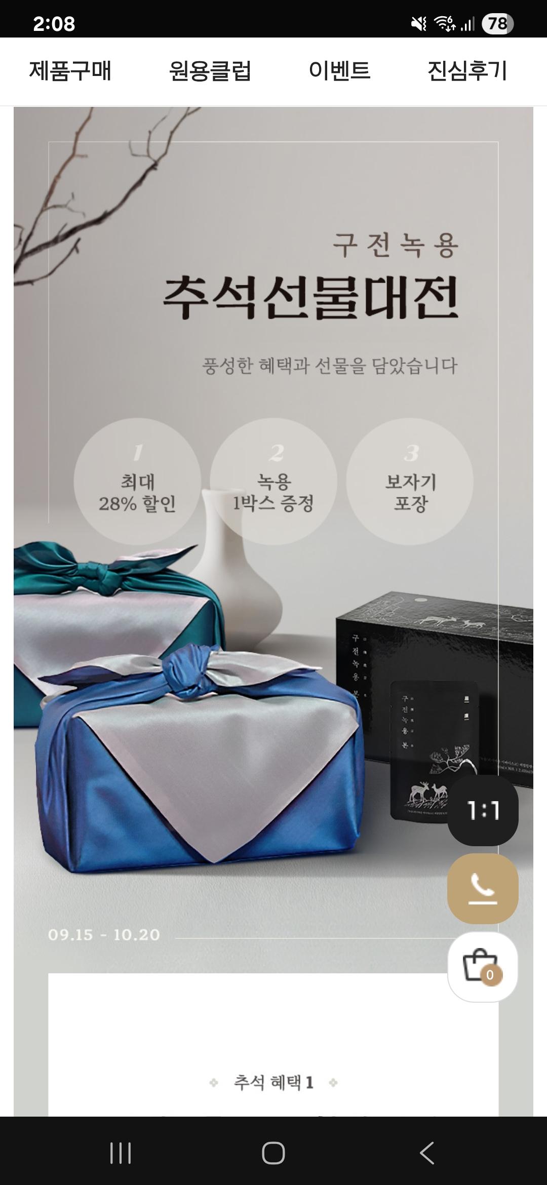 [공홈] 구전녹용 추석 선물대전 최대 28%할인+보자기 포장
