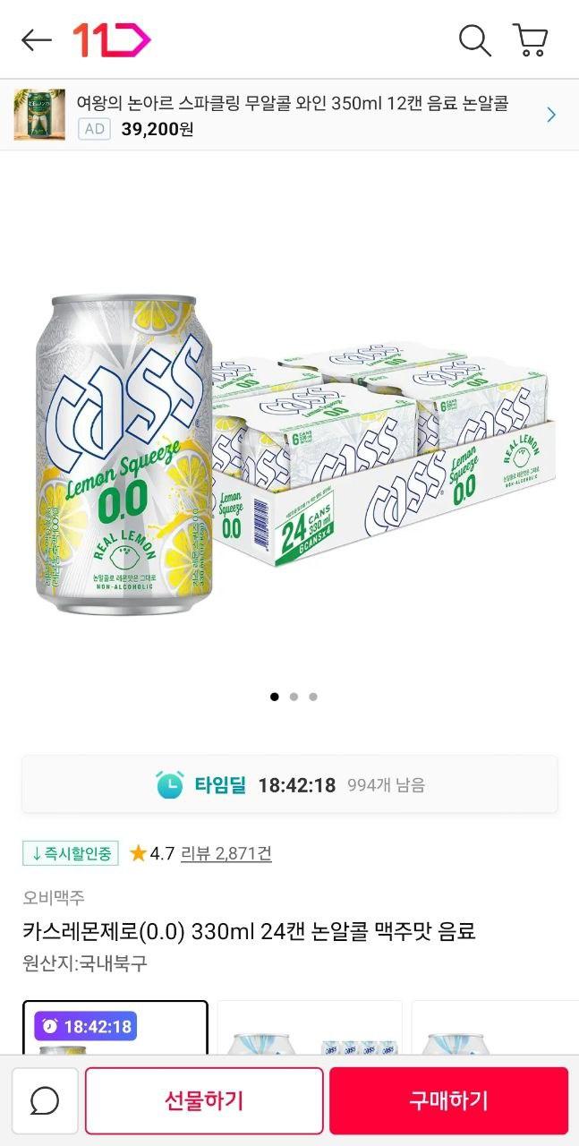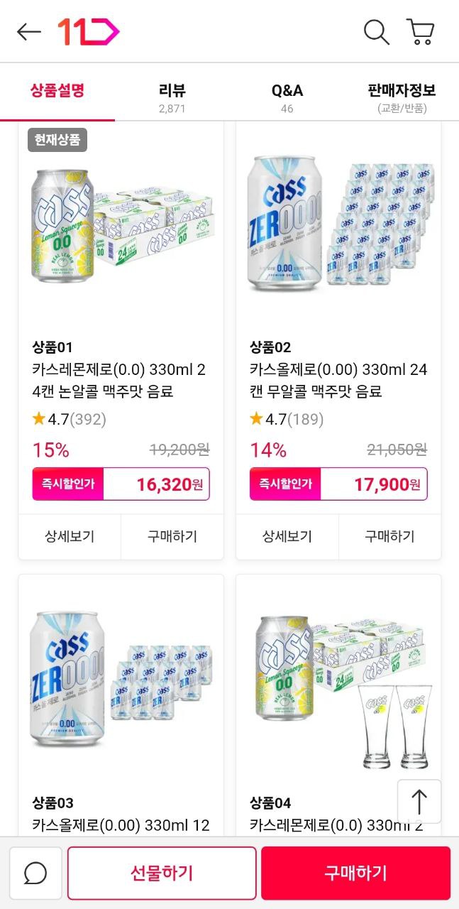 [11번가] 카스레몬제로(0.0) 330ml 24캔 논알콜 (16,320원/무배) > 국내핫딜