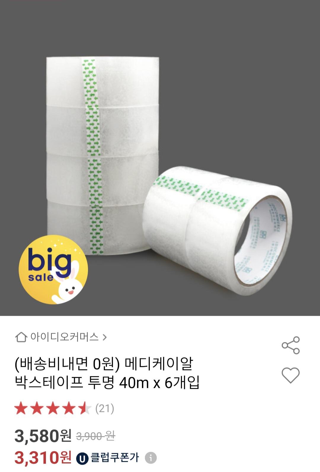 배송비 가격으로 박스테이프 6개 받을수 있어 가격 좋아요
