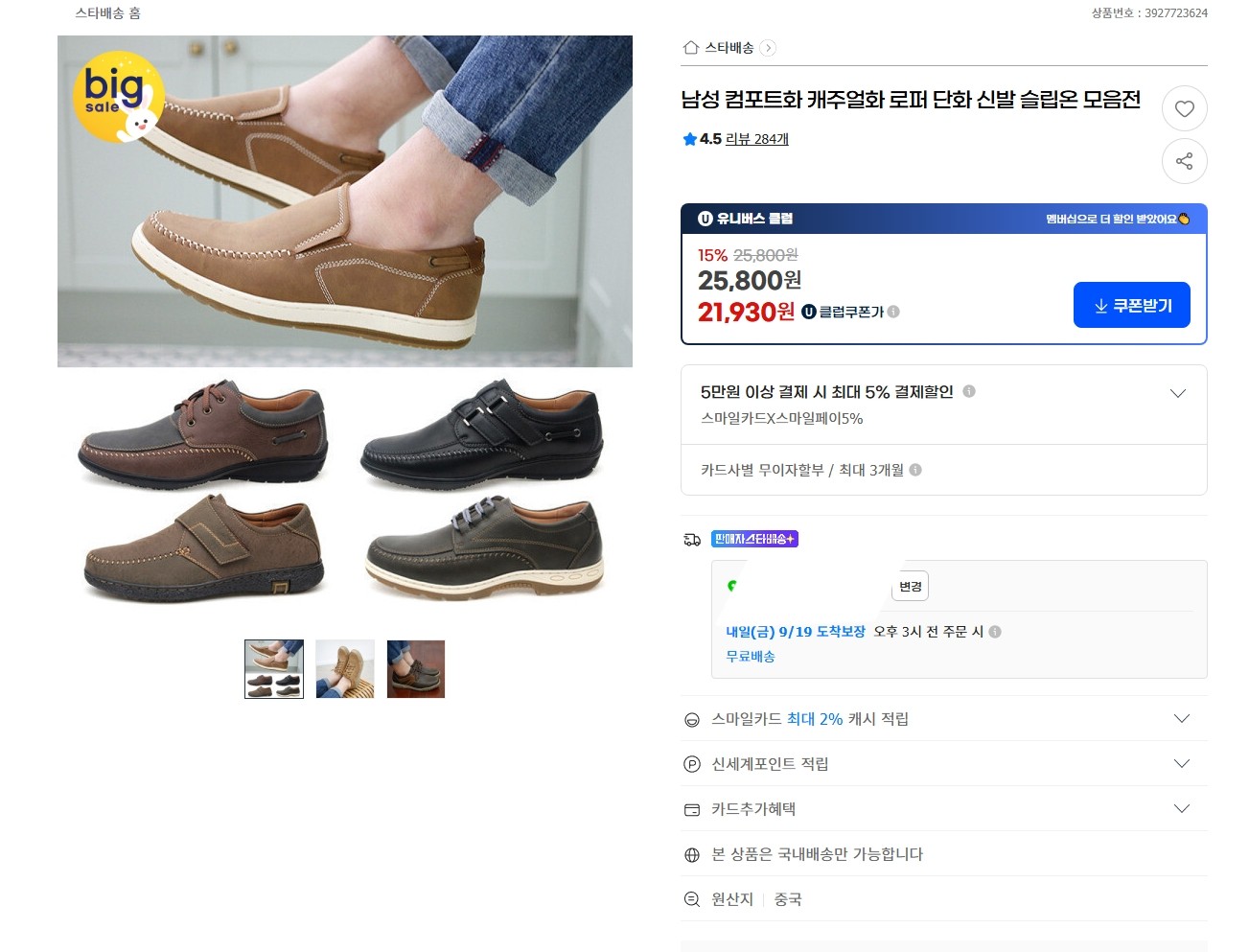 [지마켓] 남성 컴포트화 캐주얼화 로퍼 단화 신발 슬립온(21930원/무배)
