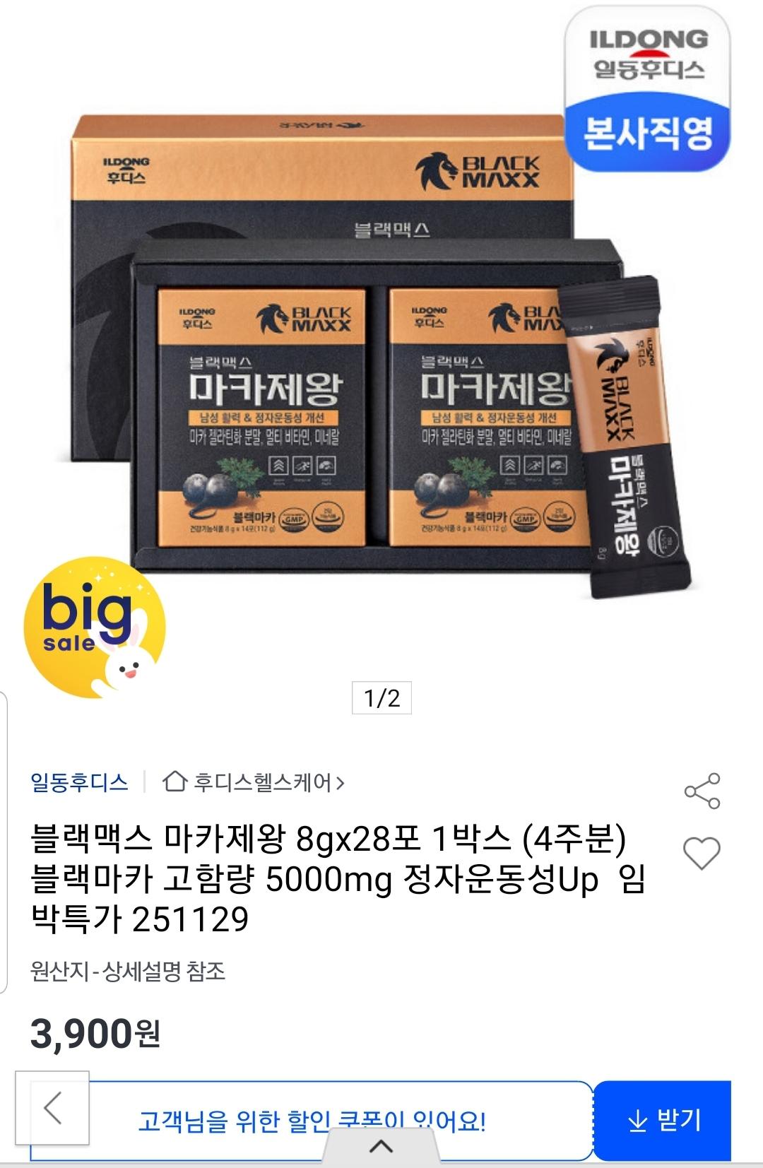 [옥션]일동후디스 블랙맥스 마카제왕 28포 1박스 (3,900원/무료) > 국내핫딜