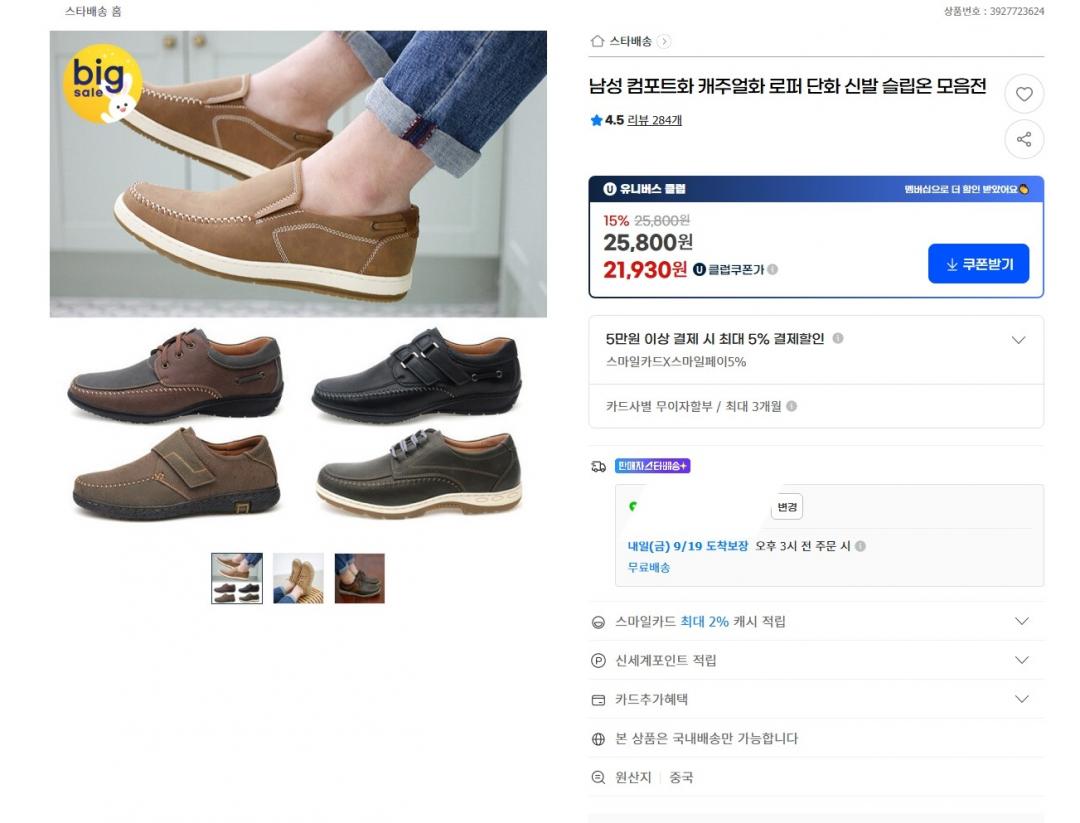[지마켓] 남성 컴포트화 캐주얼화 로퍼 단화 신발 슬립온(21930원/무배) > 국내핫딜