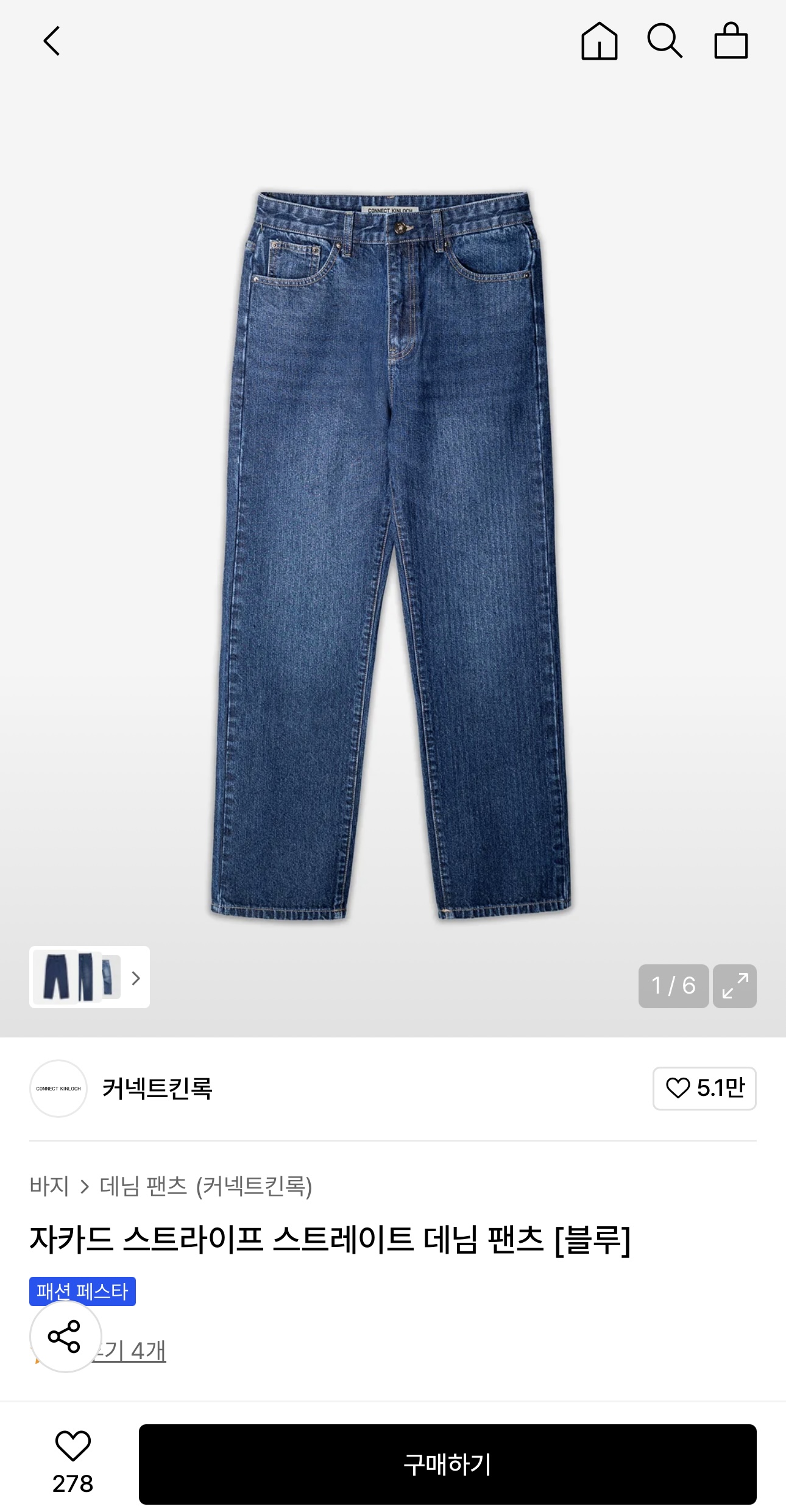 [무신사] 킨록 자카드 스트라이프 스트레이트 데님 팬츠 (79,600원/무료)