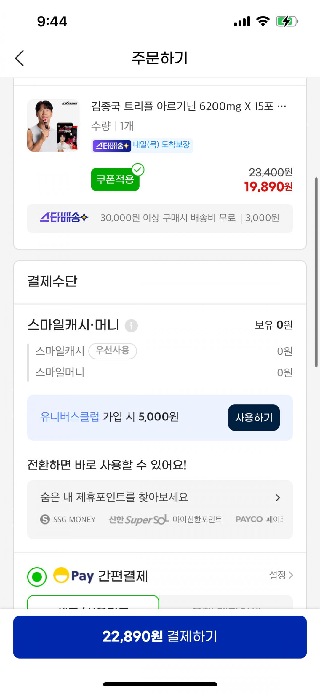 [지마켓] 김종국 트리플 아르기닌 6200mg 1박스(15포) (19,890원/무료) > 국내핫딜