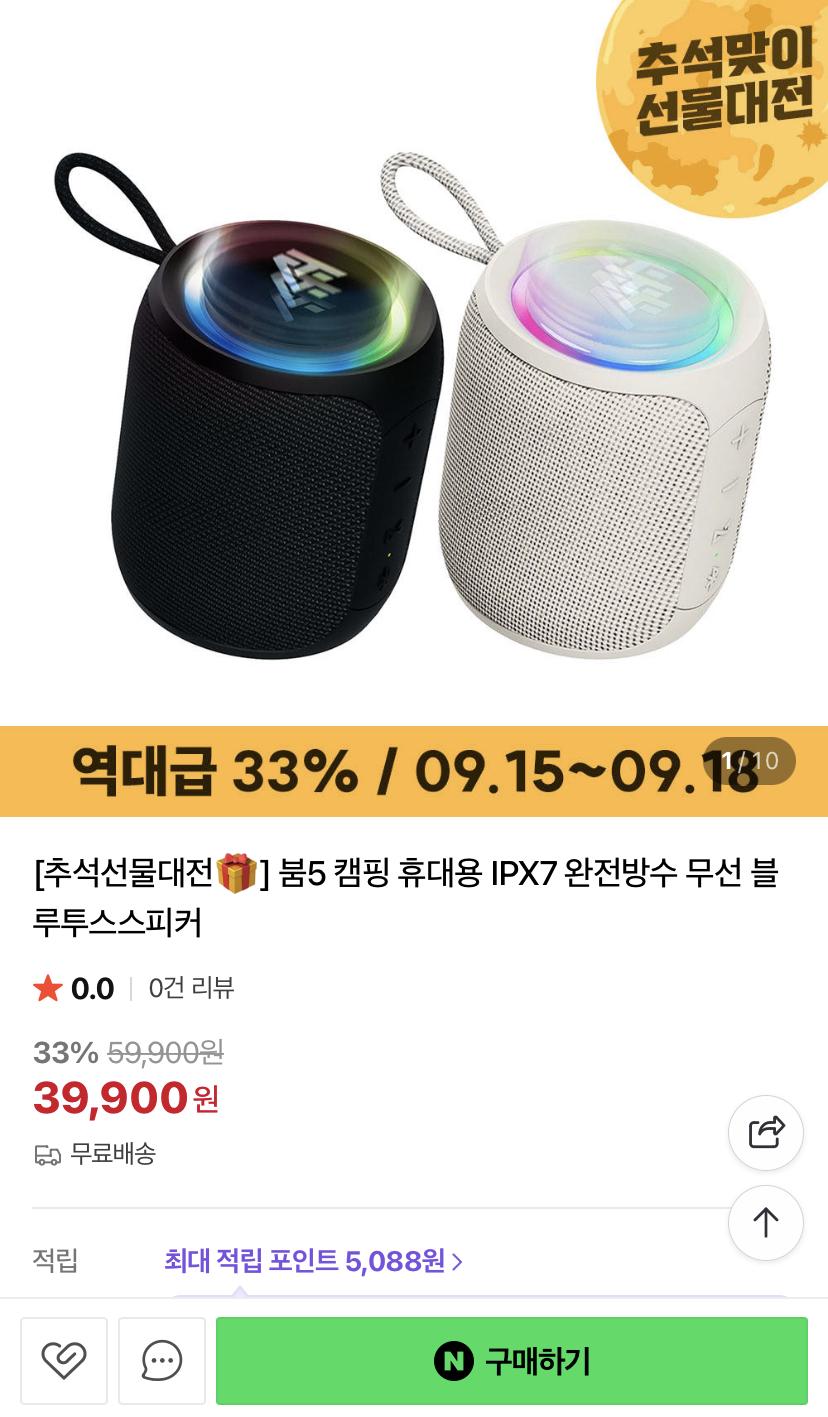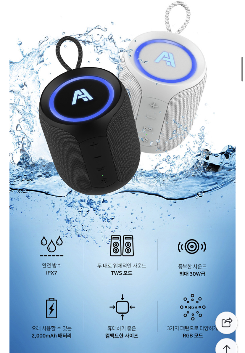 야외에서도 쓸 수 있는 IPX7 방수 스펙이라 캠핑이나 피크닉용으로 괜찮을거 같네요