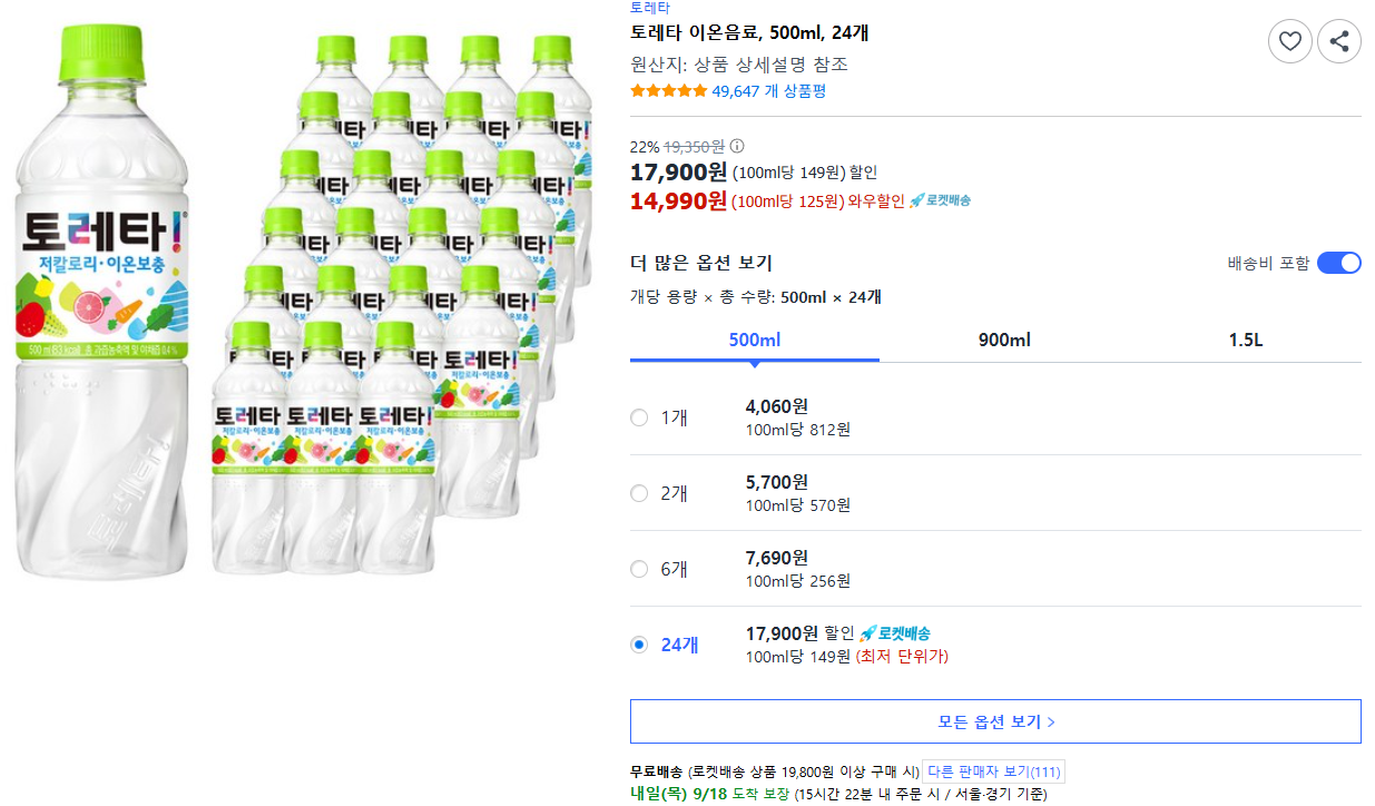 [쿠] 토레타 이온음료, 500ml, 24개 (14,990원 / 무배)