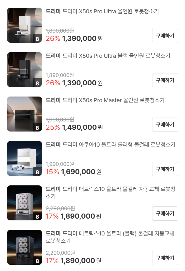[G마켓] 드리미 로봇청소기 모음 (다양 / 무료)