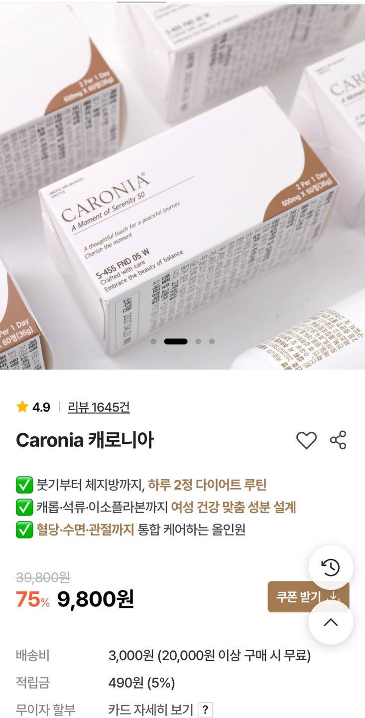 자사몰) 갱년기 케어 캐로니아 1개월분 (9,800원/2만이상무료) > 국내핫딜