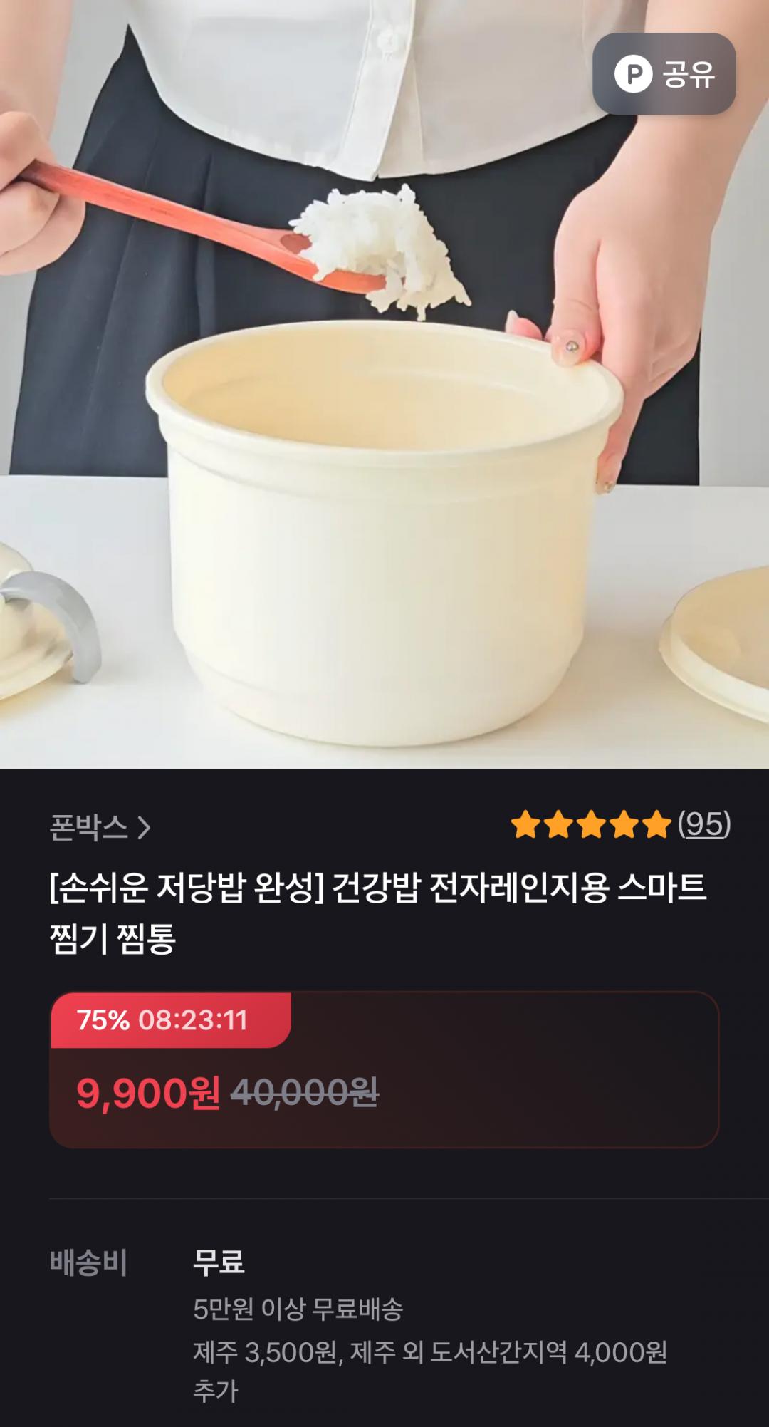 9천원대 가격에 무료배송이라 부담 없는 저당밥솥입니다