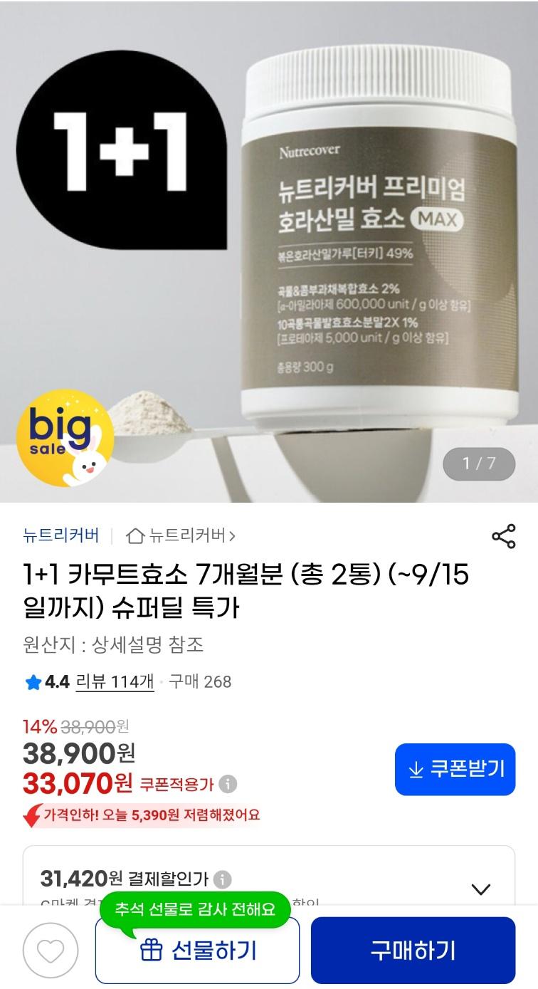 [지마켓] 카무트효소 총 2통 7개월분 (33,070원)(무료배송) > 국내핫딜