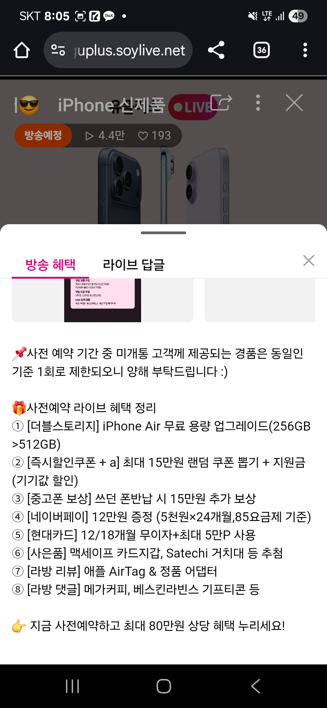 [U+ 라이브] 아이폰17 사전예약 최대 30만 + 512g 업그레이드