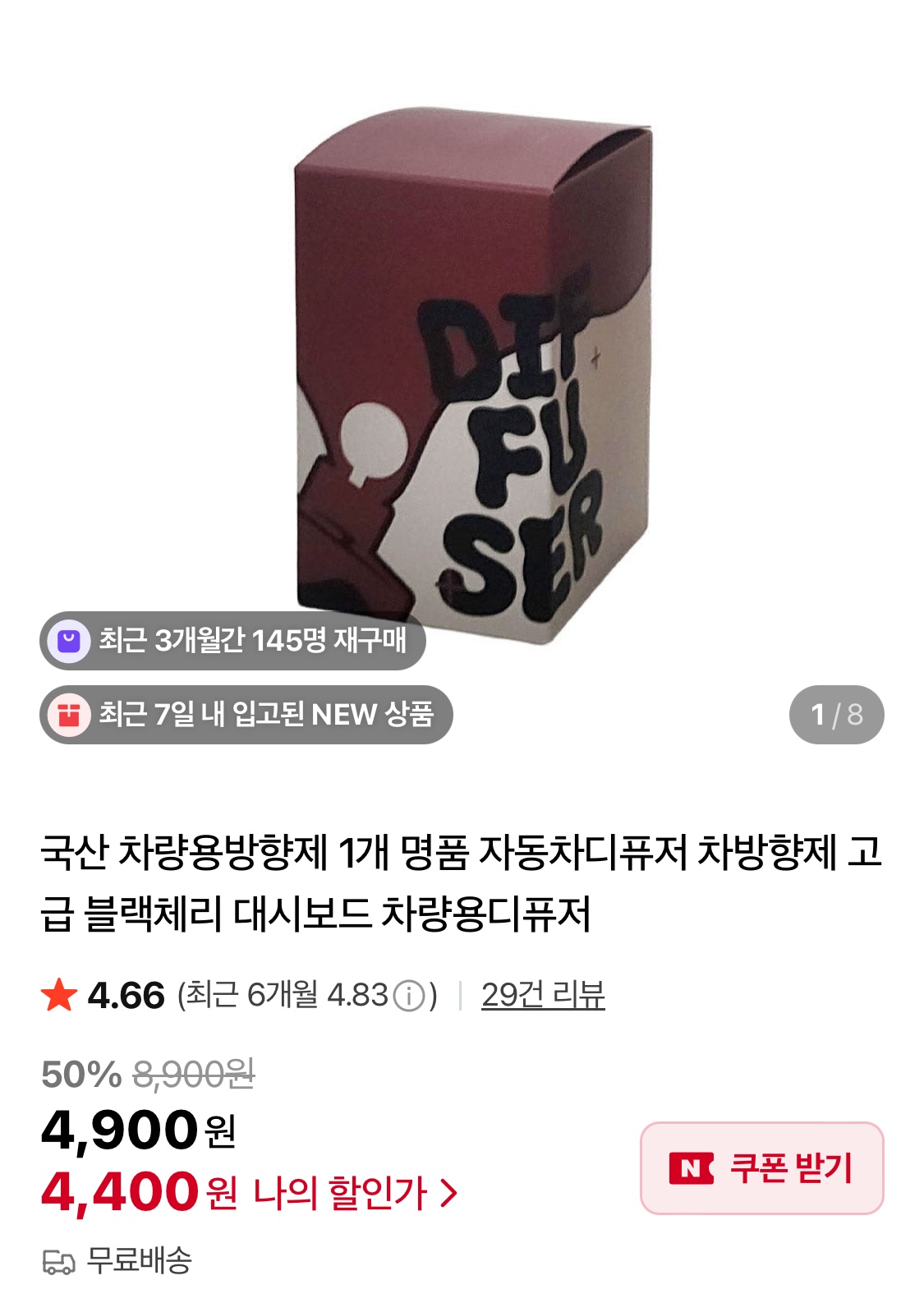 [네이버] 국산 차량용 방향제 (4,400원/무배)