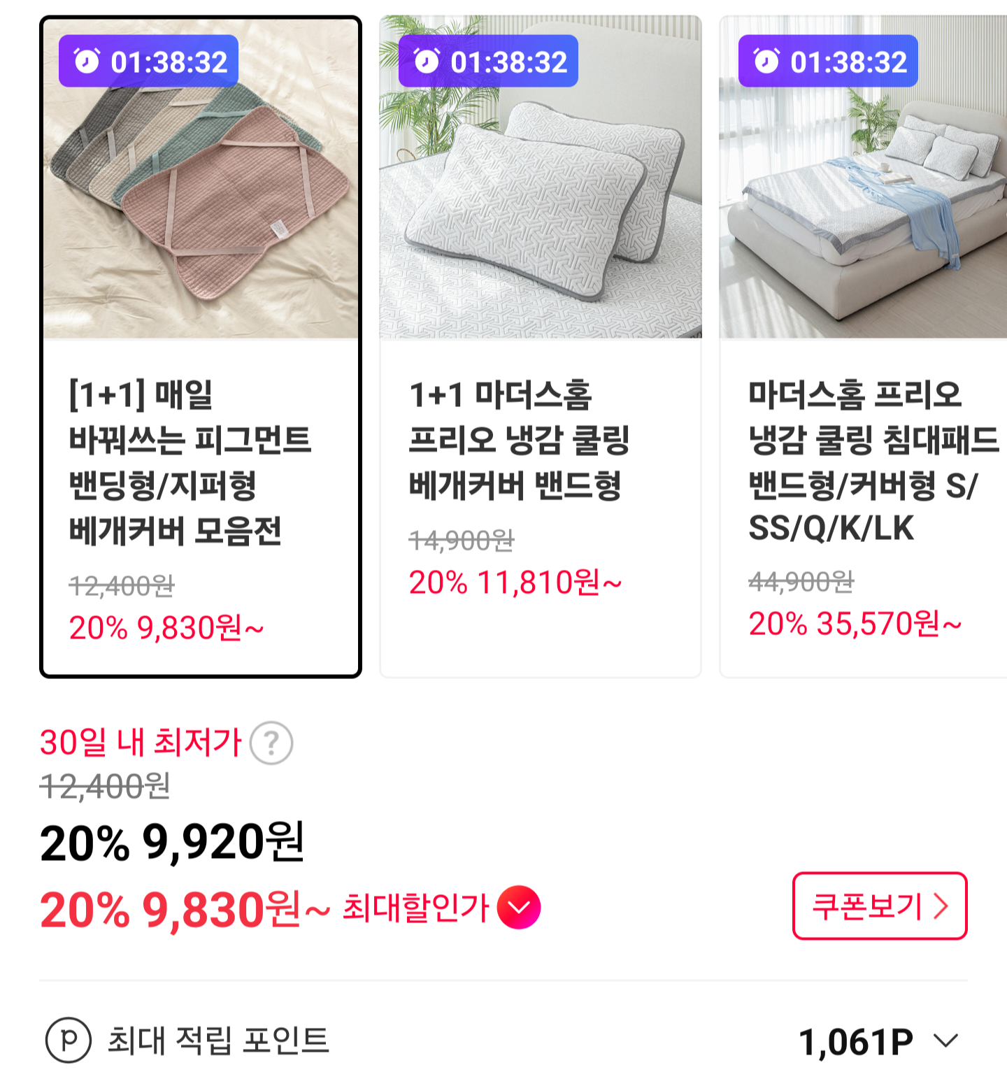 [11번가] 피그먼트 베개커버 1+1 (9,920원/무료)