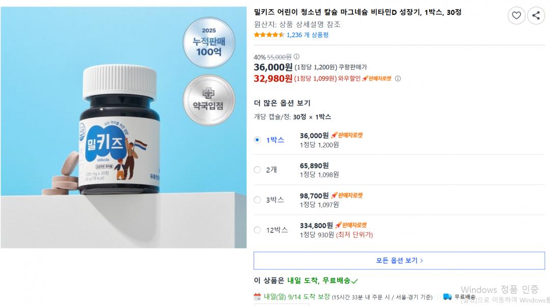 [쿠팡] 밀키즈 키 성장 영양제 (33,120원/무배) > 국내핫딜
