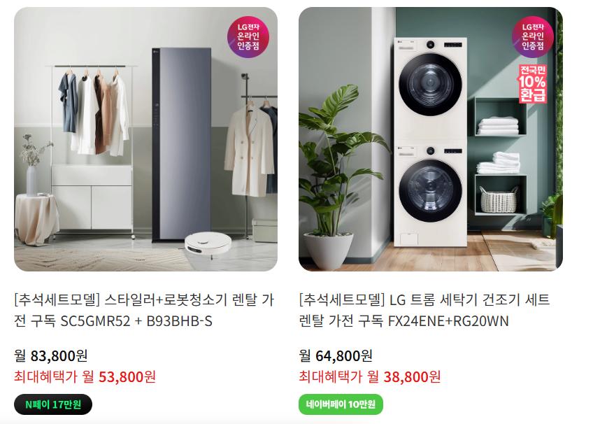 최신TV, 안마의자, 스타일러 등 월렌탈로 이용하는서비스인데